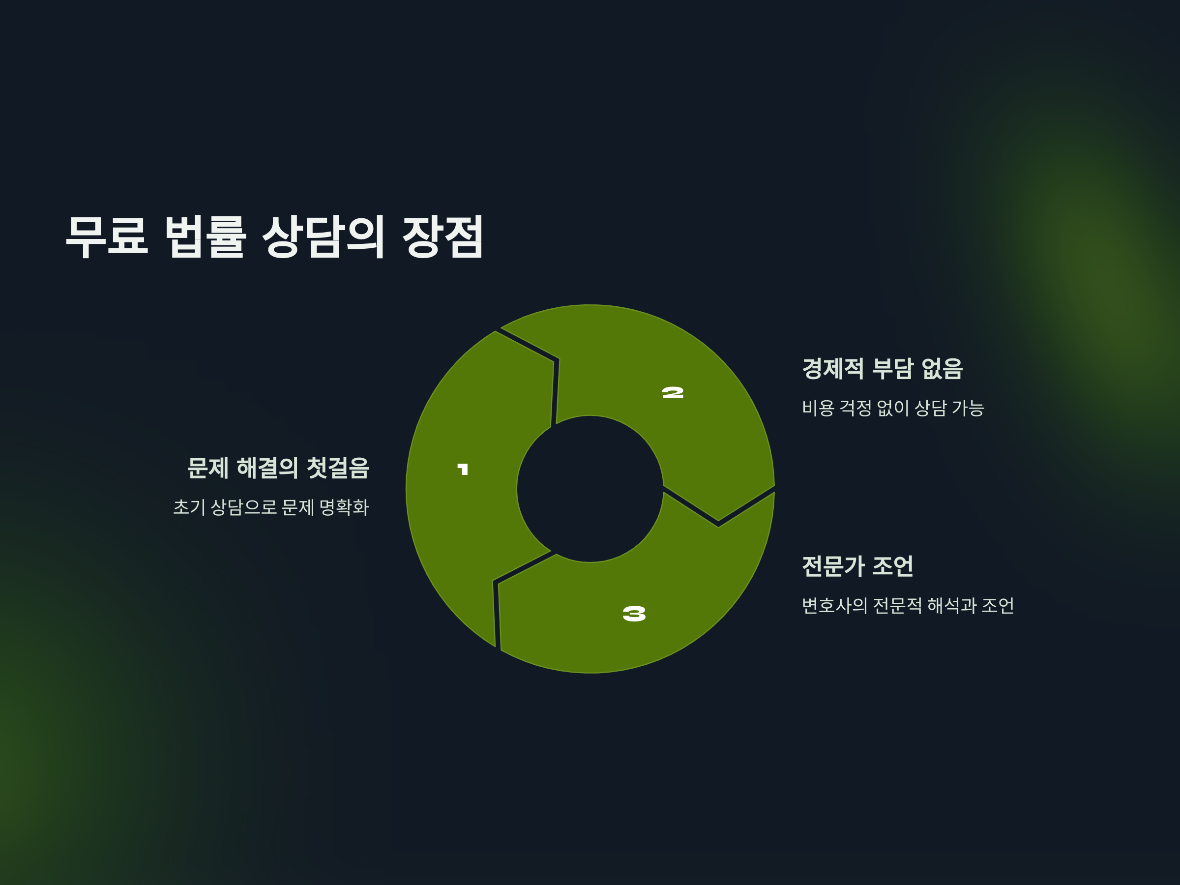 무료 법률 상담은 법적인 문제를 처음 겪는 많은 노인들에게 중요한 첫 번째 단추입니다. 초기 상담을 통해 문제를 명확히 이해하고, 해결 방안을 찾는 것이 중요합니다. 이를 통해 큰 법적 문제로 발전하는 것을 방지할 수 있습니다.