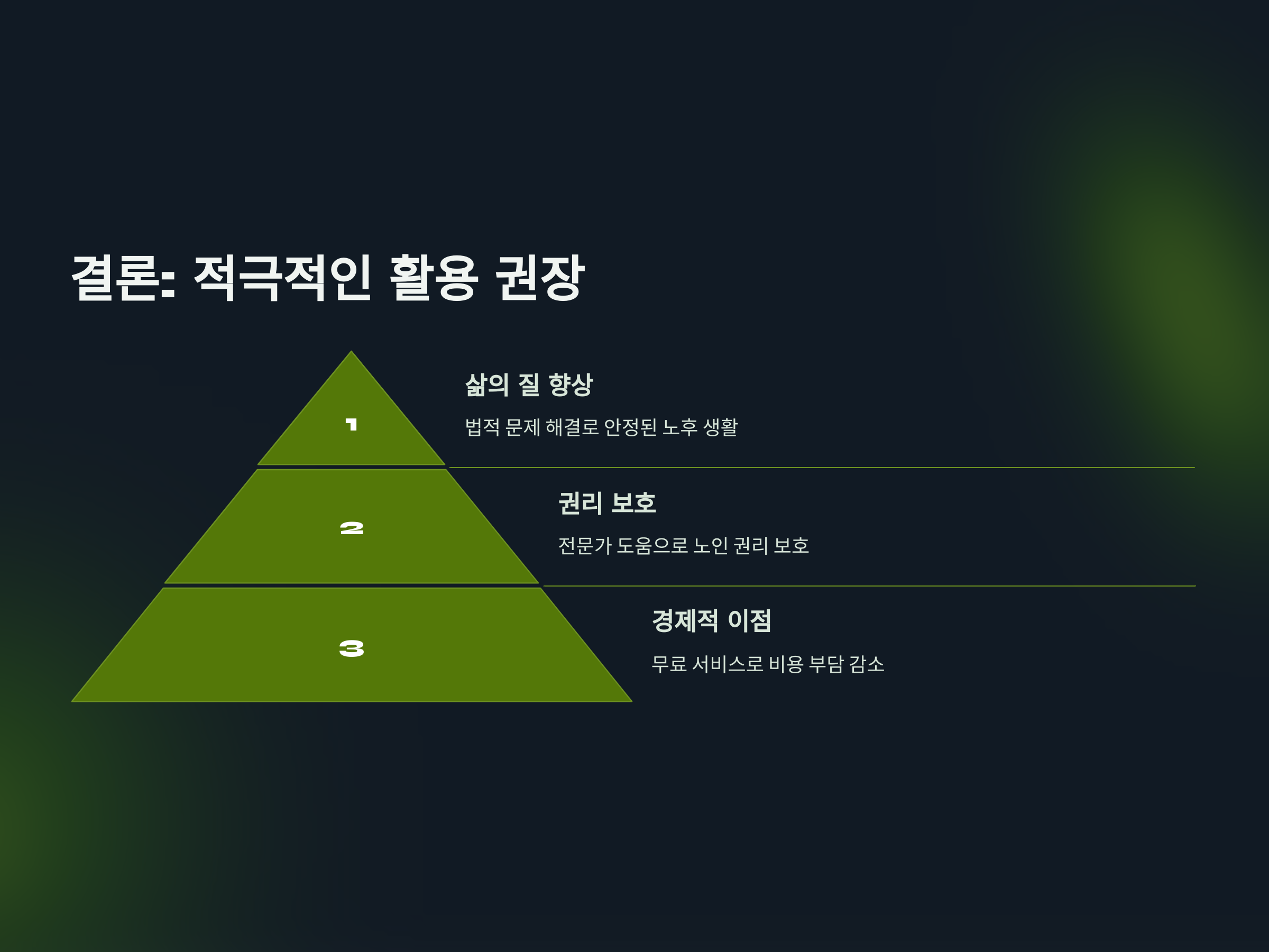 무료 법률 상담은 경제적인 부담을 느끼는 노인들에게 매우 유용한 서비스입니다. 법적 문제를 해결하는 데 있어 비용이 큰 걸림돌이 될 수 있는데, 이 서비스를 통해 비용 부담 없이 필요한 법률적 지원을 받을 수 있습니다.