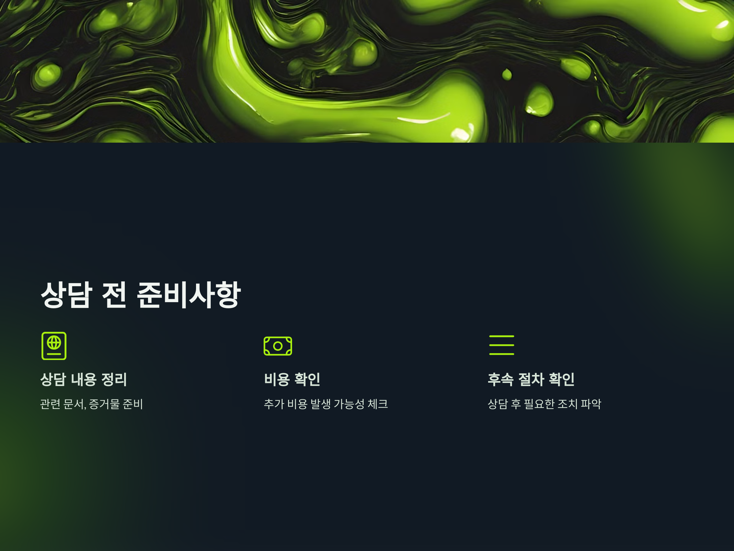 법률 상담을 받을 때는 상담이 원활하게 진행되도록 문제를 미리 정리해 놓는 것이 중요합니다. 예를 들어, 상속 문제라면 관련된 문서나 증거물을 준비해 두고, 가정폭력 문제라면 경찰 신고서나 병원 기록 등을 준비해두면 좋습니다. 이러한 자료를 미리 준비해 두면 상담이 더 효과적이고 신속하게 이루어질 수 있습니다.