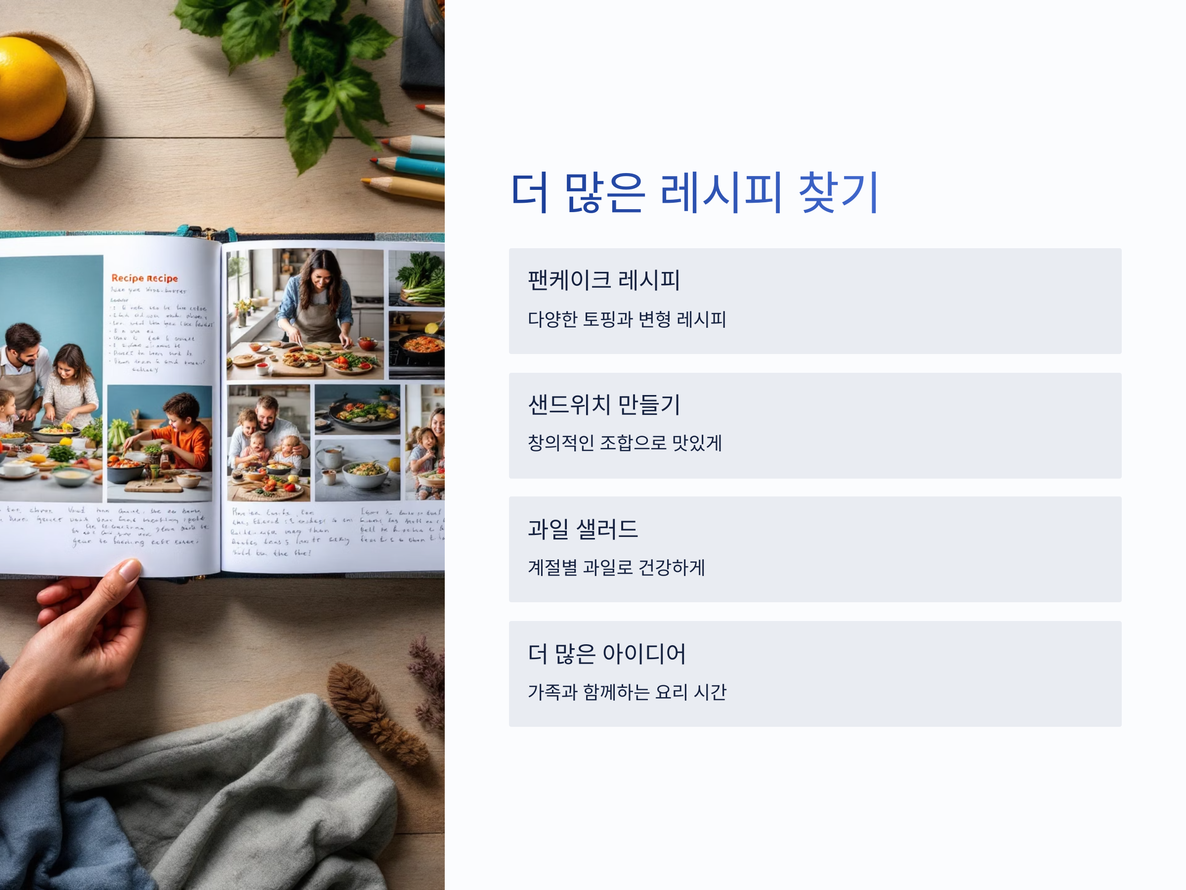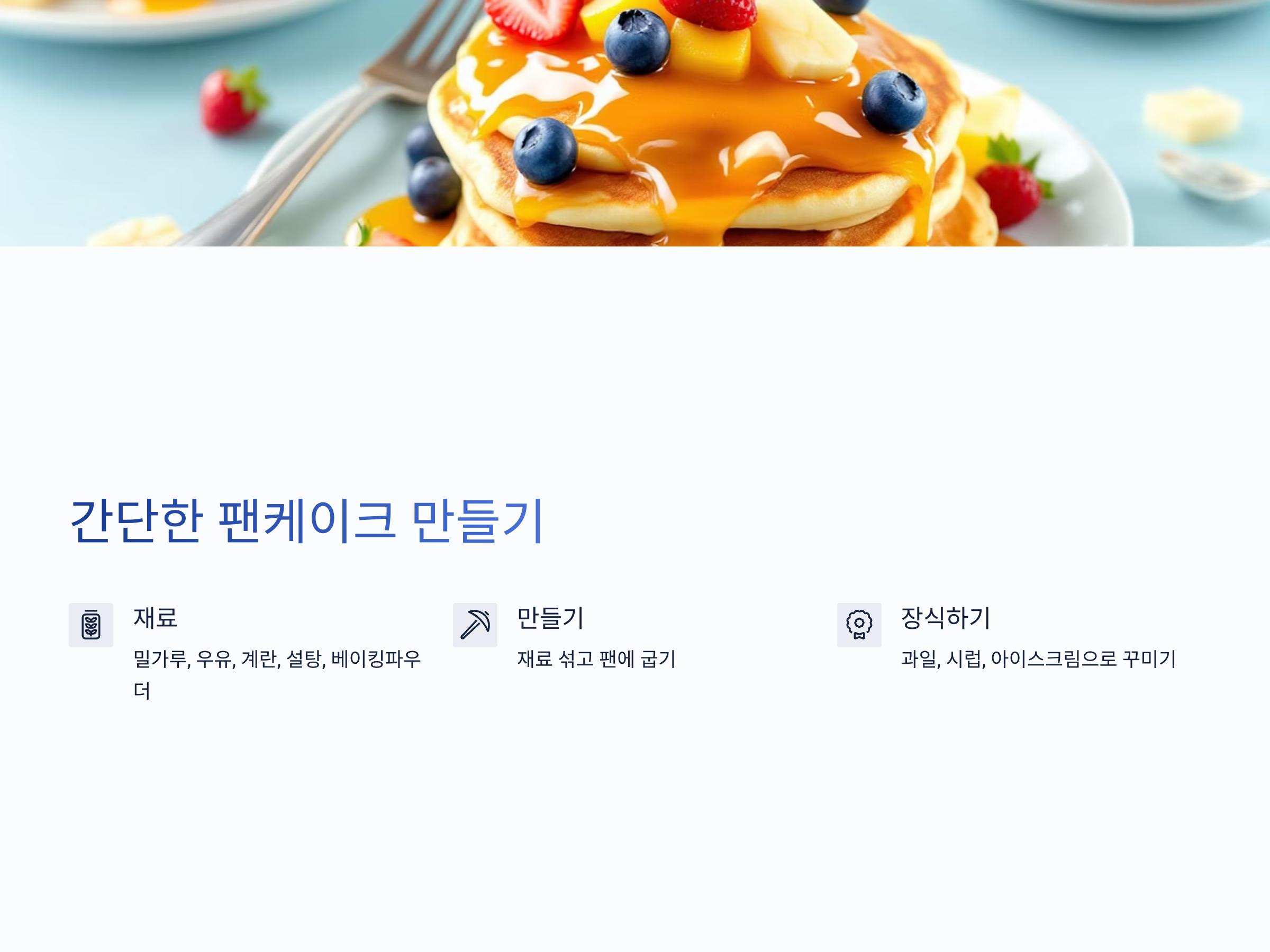 팬케이크 레시피 자세히 알아보기 샌드위치 만드는 법 보기 과일 샐러드 레시피 보기