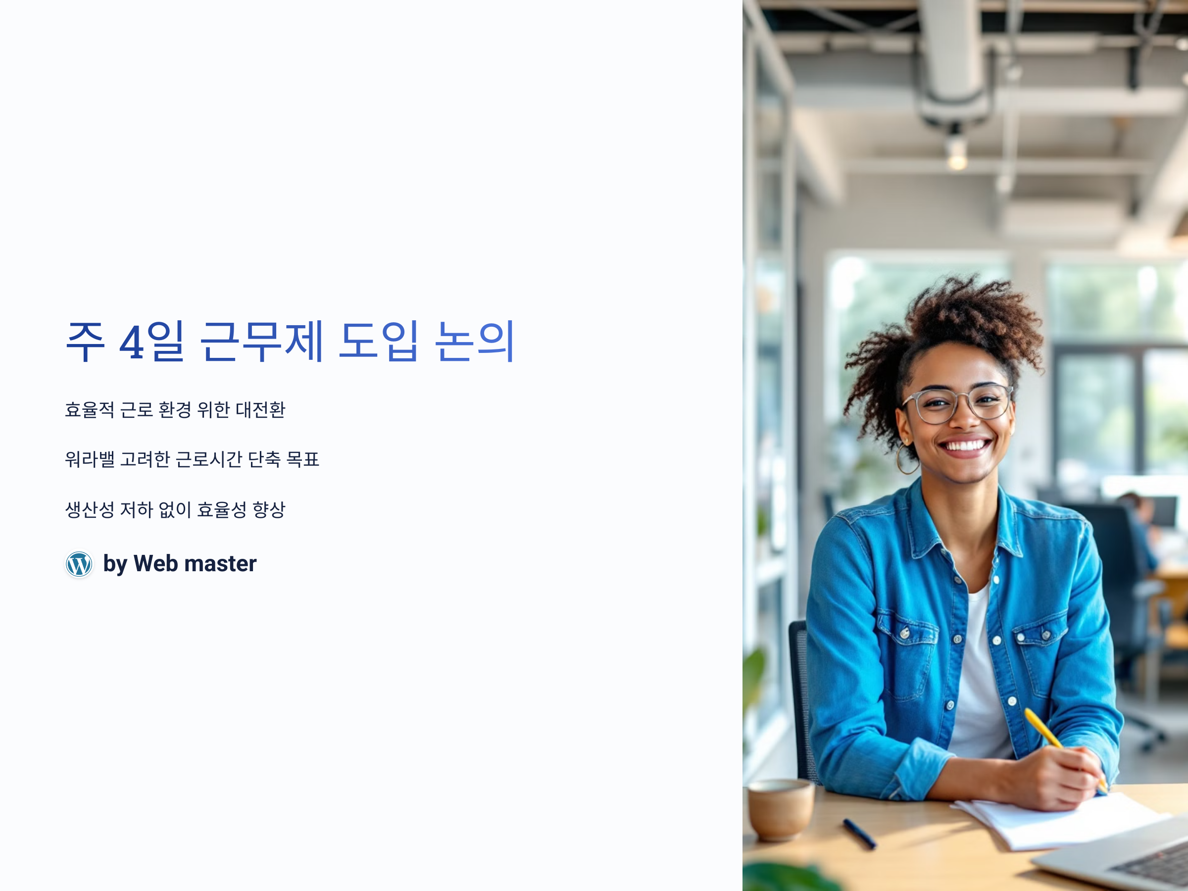 최근 많은 기업과 정부에서 주 4일 근무제를 도입에 대한 논의를 시작하며, 이 제도가 많은 관심을 끌고 있습니다. 주 4일 근무제는 직원들의 워라밸을 고려한 근로 시간 단축을 목표로 하며, 생산성의 저하 없이 효율성을 높일 수 있는 방법으로 떠오르고 있습니다. 특히, 전 세계적으로 일과 삶의 균형을 중시하는 문화가 확산되면서 이 제도에 대한 도입이 더욱 가속화되고 있습니다. 그런데 주 4일 근무제가 실제로 효과적일지에 대한 논란도 여전히 존재합니다. 이에 대해 다양한 의견과 사례들을 살펴보며, 앞으로 주 4일 근무제가 어떻게 발전할 수 있을지에 대한 예측을 해봅니다.