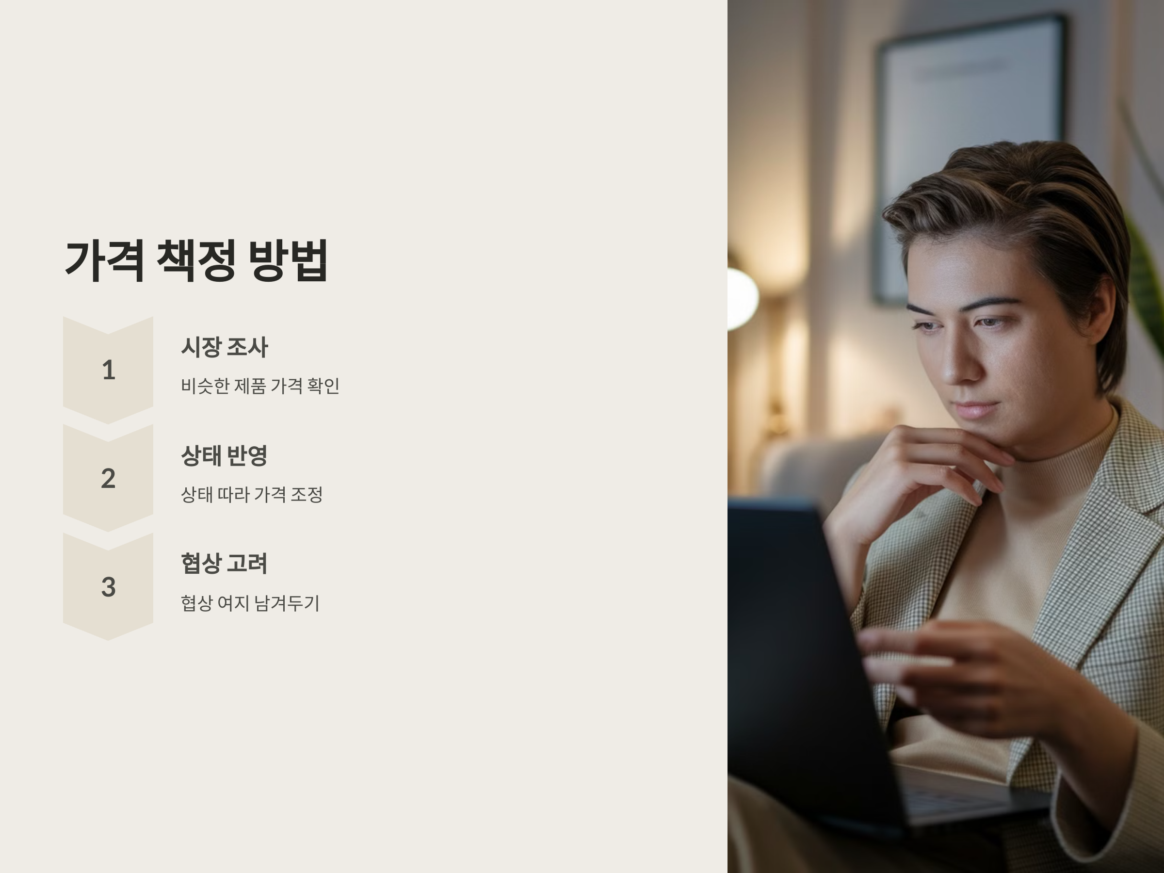 - 상호 협상 고려: 가격은 조금 협상할 여지를 남겨두는 것이 좋습니다. 초기 가격보다 약간 높은 가격을 제시하면, 협상 시 유리하게 이끌 수 있습니다.