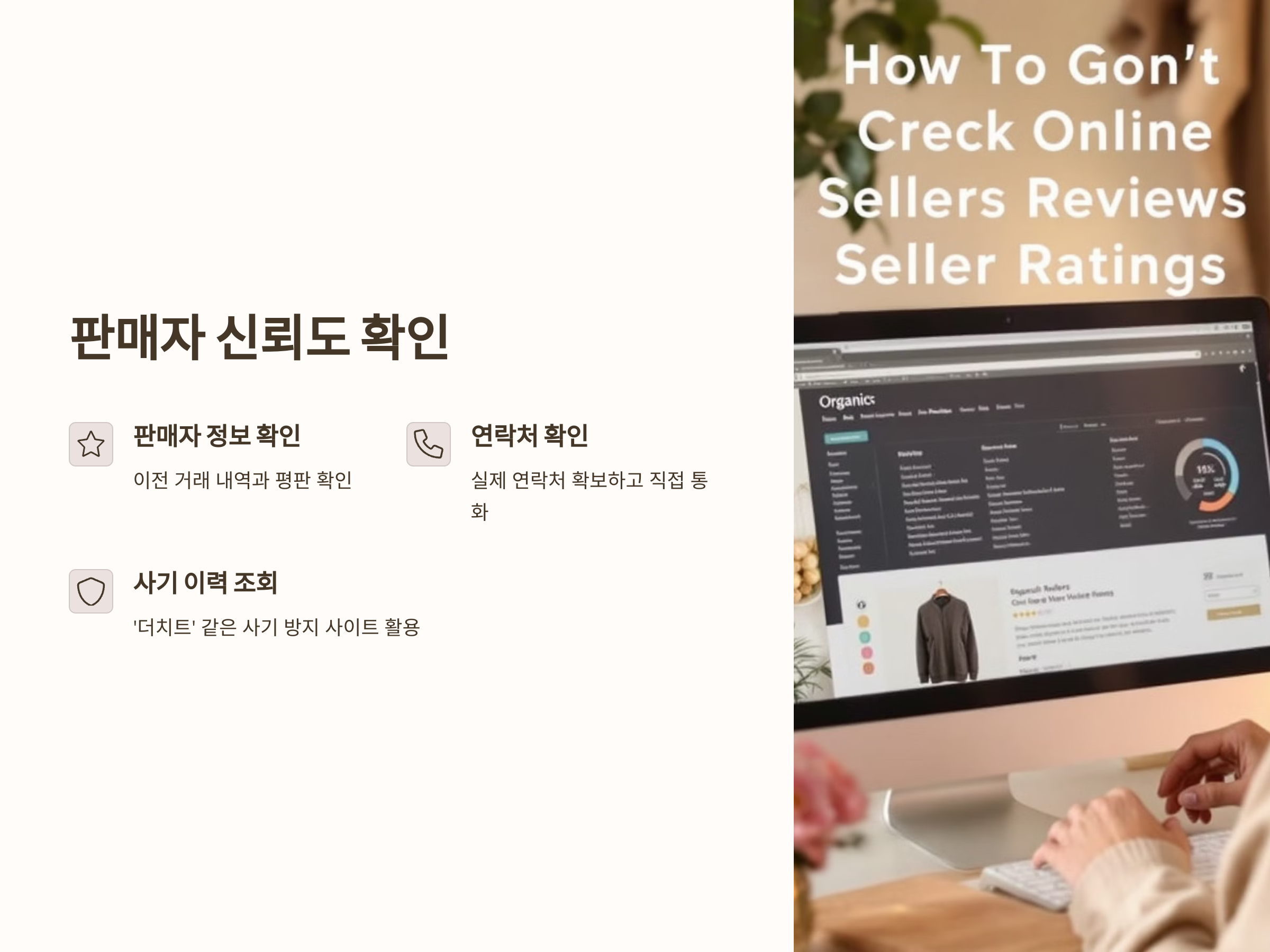 - 판매자 정보 확인: 판매자의 이전 거래 내역과 평판을 확인하세요. 온라인 거래 플랫폼에서는 판매자의 평가나 리뷰를 참고할 수 있습니다. 평판이 좋지 않거나 거래 내역이 부족한 판매자는 주의해야 합니다.
