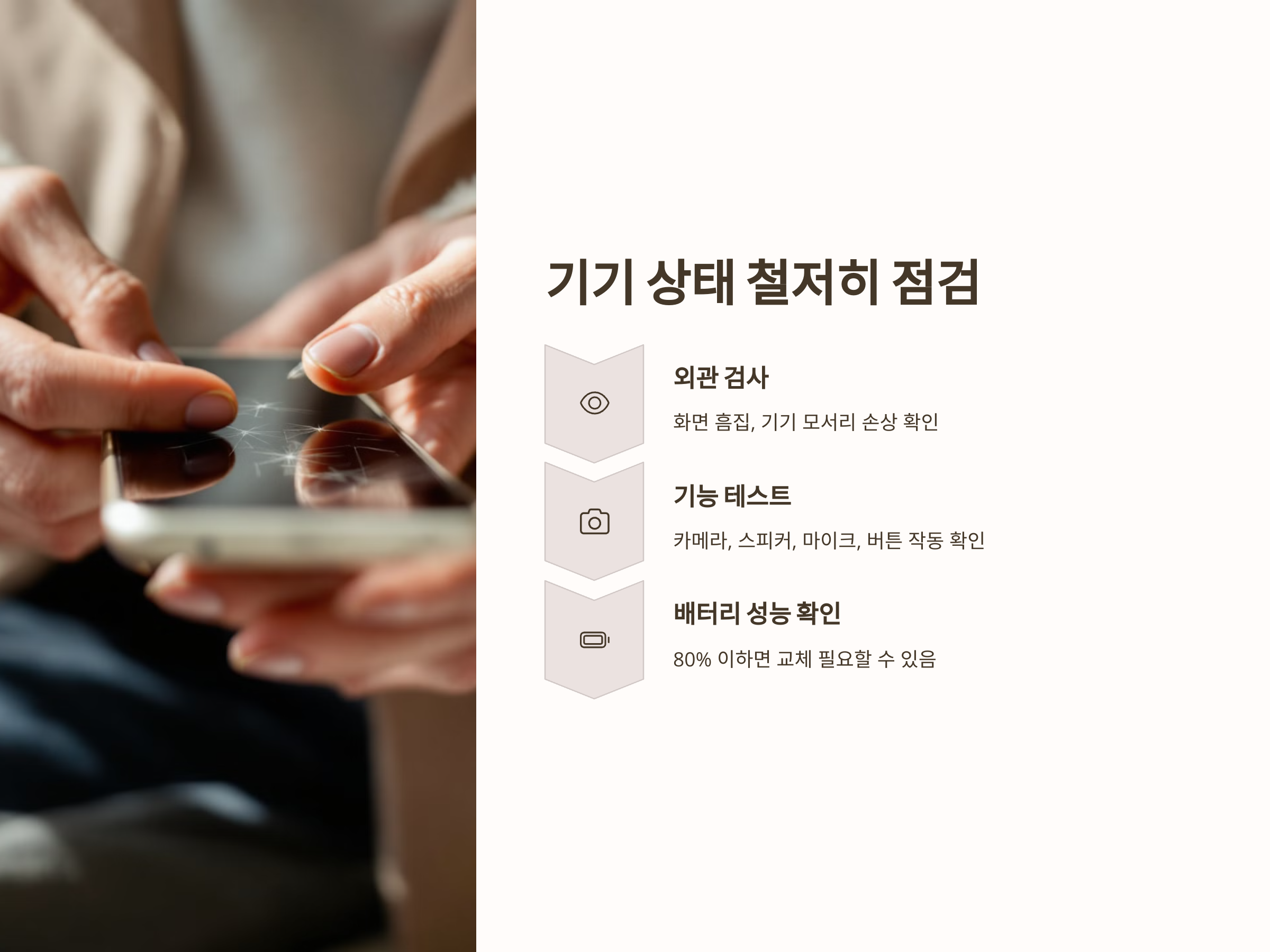 구매하려는 중고 스마트폰의 상태를 꼼꼼히 확인하는 것은 필수입니다. 외관뿐만 아니라 내부 기능까지 세심하게 점검해야 합니다.