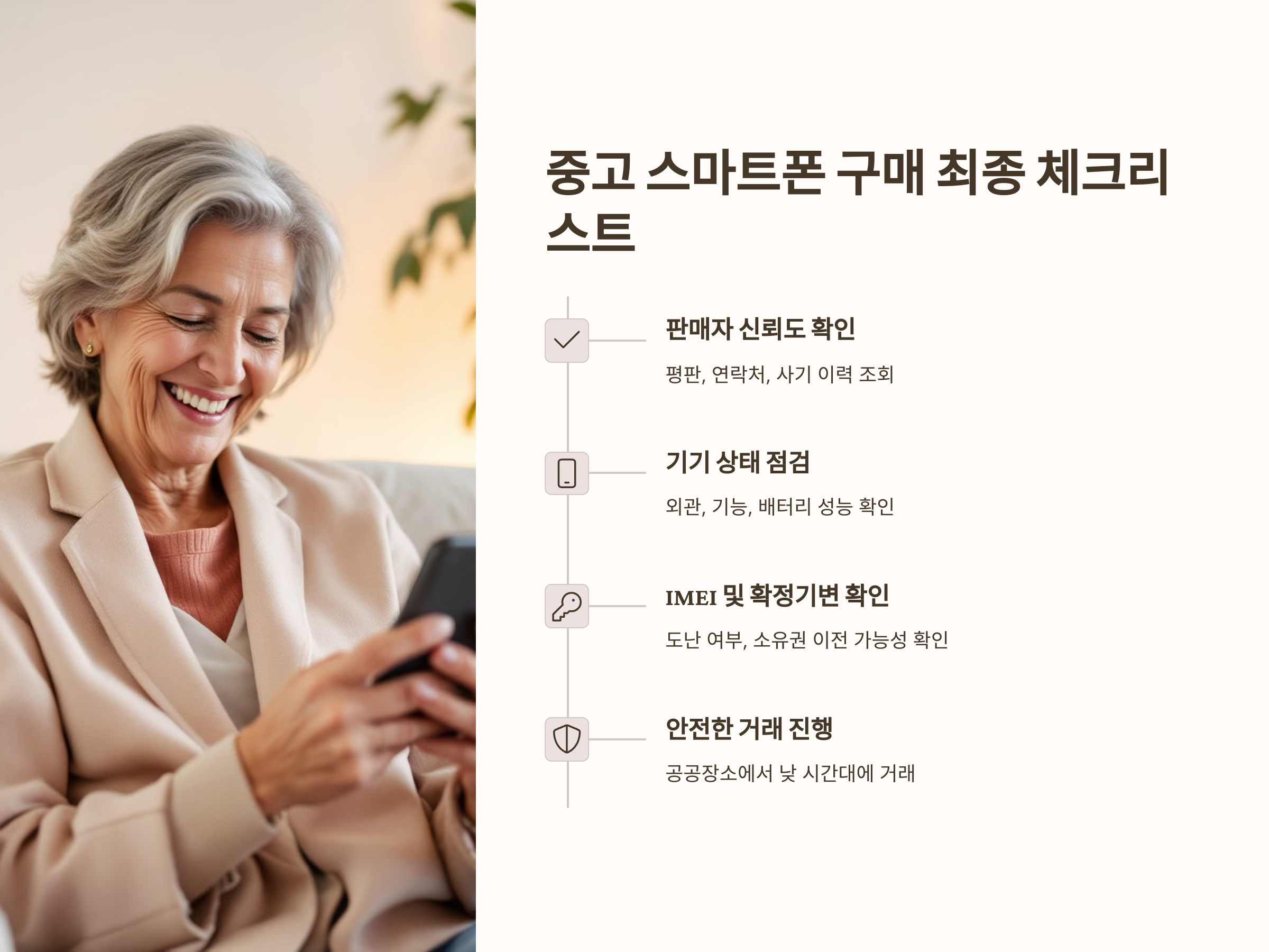 중고 스마트폰은 경제적인 가격으로 최신 기술을 경험할 수 있는 매력적인 선택입니다. 그러나 잘못된 구매는 금전적 손실이나 개인정보 유출 등 예기치 않은 문제를 초래할 수 있습니다. 특히 시니어 분들은 이러한 위험에 더욱 노출될 수 있으므로, 안전하고 만족스러운 거래를 위해 반드시 알아야 할 사항들을 정리했습니다.