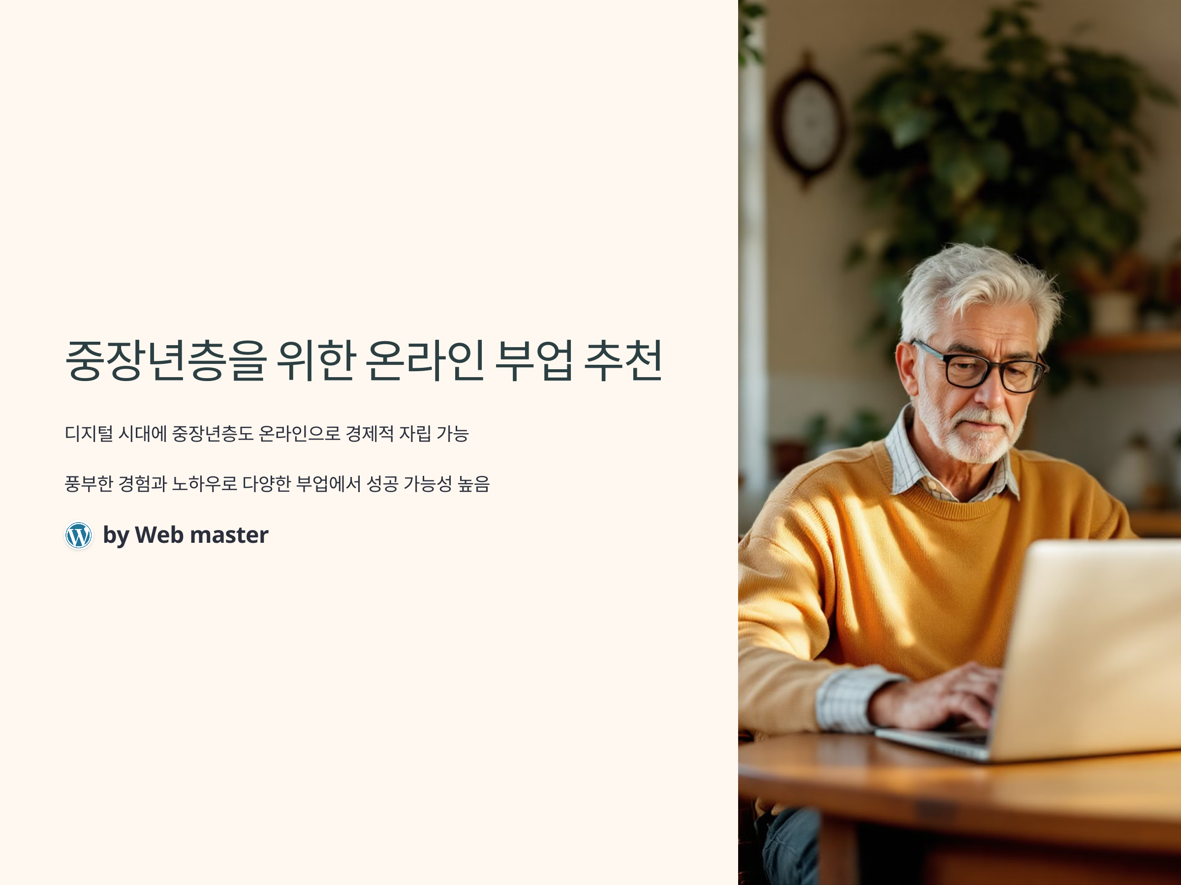 디지털 시대가 빠르게 발전하면서 중장년층도 온라인을 통해 경제적 자립을 이룰 수 있는 기회를 많이 찾고 있습니다. 전통적인 직업 외에도 다양한 온라인 부업을 통해 자신만의 수입원을 만들 수 있습니다. 특히, 중장년층은 풍부한 경험과 인생의 노하우를 바탕으로 다양한 온라인 부업에서 성공적인 결과를 얻을 수 있는 가능성이 높습니다. 이번 글에서는 중장년층이 할 수 있는 온라인 부업 추천과 함께, 성공적인 온라인 부업을 위한 팁을 소개하고자 합니다.