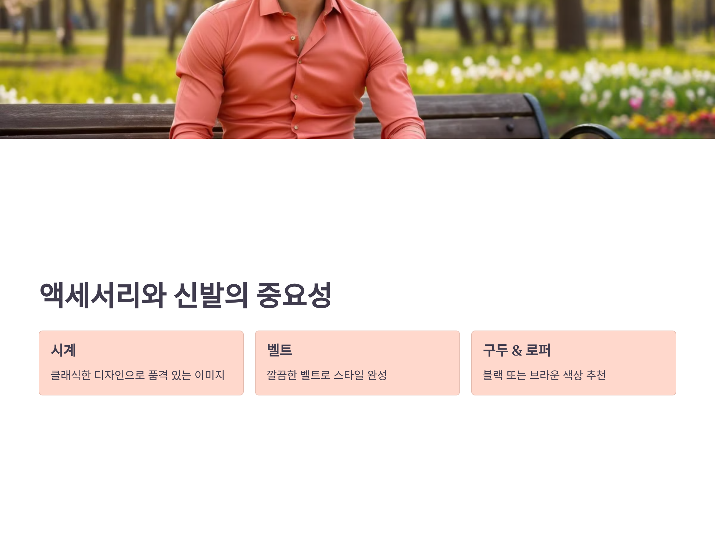 액세서리와 신발을 잘 활용하면 보다 세련되고 완성도 높은 스타일을 연출할 수 있습니다.