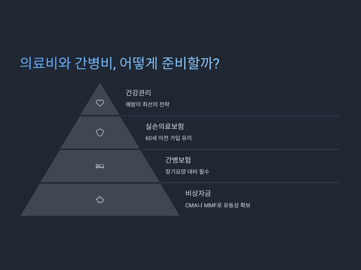 노후의 가장 큰 복병 중 하나는 '의료비'입니다. 건강보험이 있다고 하더라도, 중증 질환이나 장기 치료가 필요한 경우 본인 부담금이 상당히 높을 수 있습니다. 또한 요양병원 입원이나 간병인의 도움을 받아야 할 경우, 월 수백만 원의 추가 비용이 발생합니다.