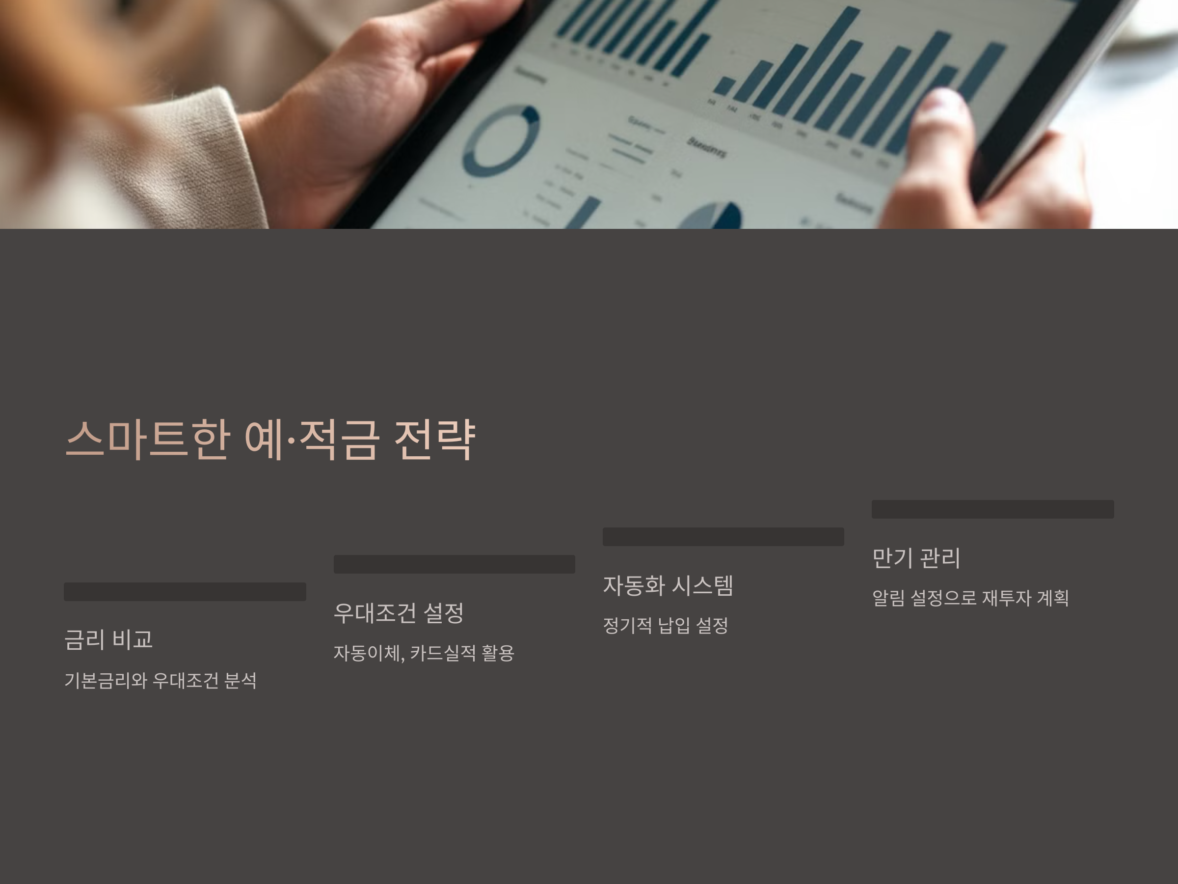 이제는 예·적금도 스마트하게 가입하고, 더 나은 수익을 만드는 시대입니다. 매달 자동이체와 카드 실적만으로도 금리를 올릴 수 있는 인터넷 은행의 혜택을 잘 활용해보세요.