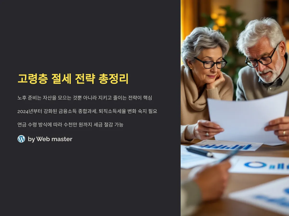 노후 준비는 단순히 자산을 모으는 것이 아니라, 이를 '어떻게 지키고, 어떻게 줄일 수 있을지'에 대한 전략이 핵심입니다. 특히 최근 고령층의 자산이 부동산 및 금융 자산에 집중되어 있는 경향을 보이며, 이에 따라 세금 문제도 갈수록 복잡해지고 있습니다. 2024년부터 강화된 금융소득 종합과세 기준, 퇴직소득세율 변화, 상속·증여세 체계 등은 고령층이 반드시 숙지하고 있어야 할 사항입니다.