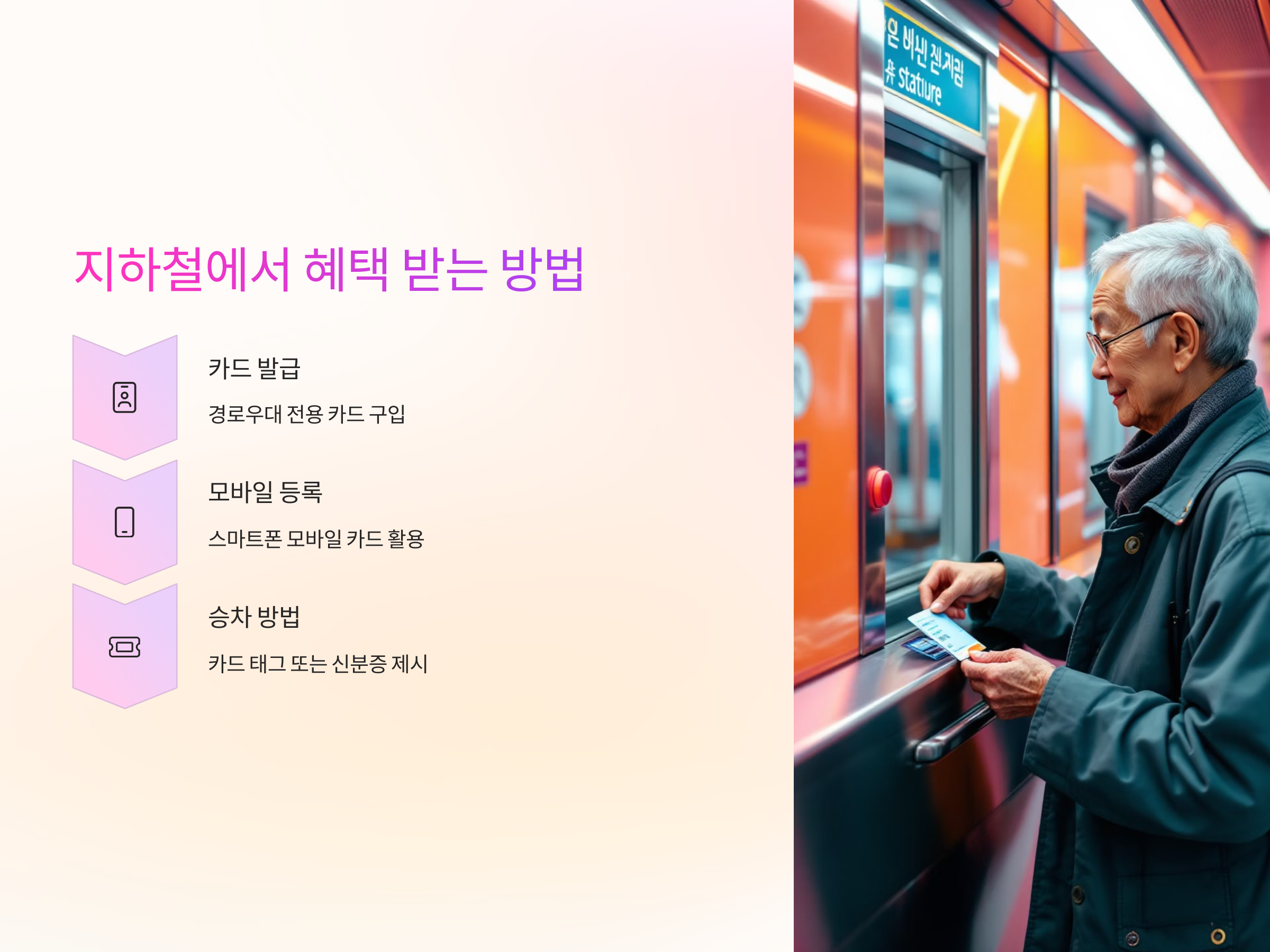 경로우대 혜택을 받기 위한 구체적인 방법은 다음과 같습니다. 각 대중교통 수단에서 경로우대 혜택을 어떻게 적용받을 수 있는지에 대해 자세히 알아보겠습니다.