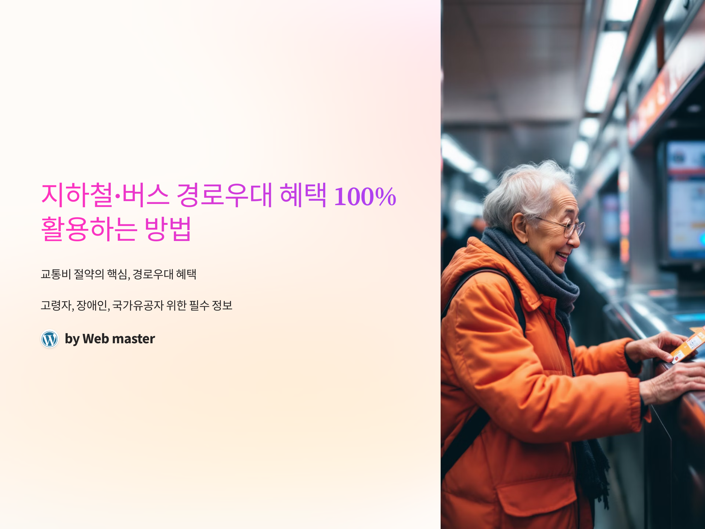 교통비 절감을 원하신다면, 꼭 읽어보셔야 할 내용입니다. 경로우대 혜택을 놓치지 않기 위한 필수 팁부터 혜택을 적용하는 실용적인 방법까지 다양한 정보를 제공합니다. 특히, 최신 정책과 변화된 내용을 반영해 정확한 정보를 안내드리니 놓치지 마세요!