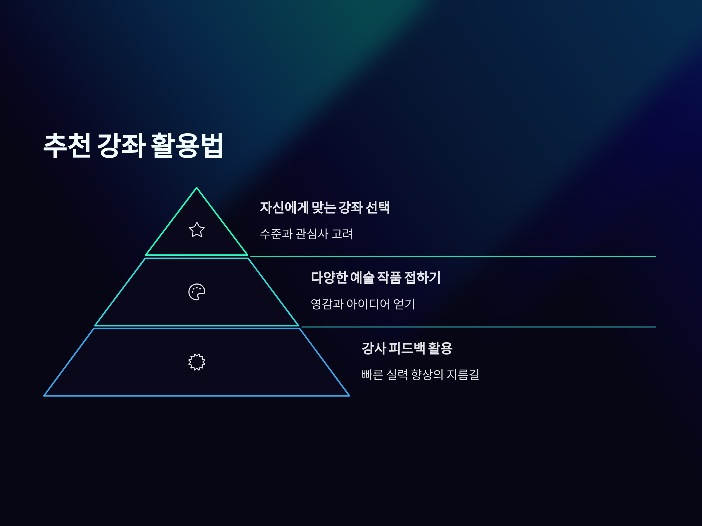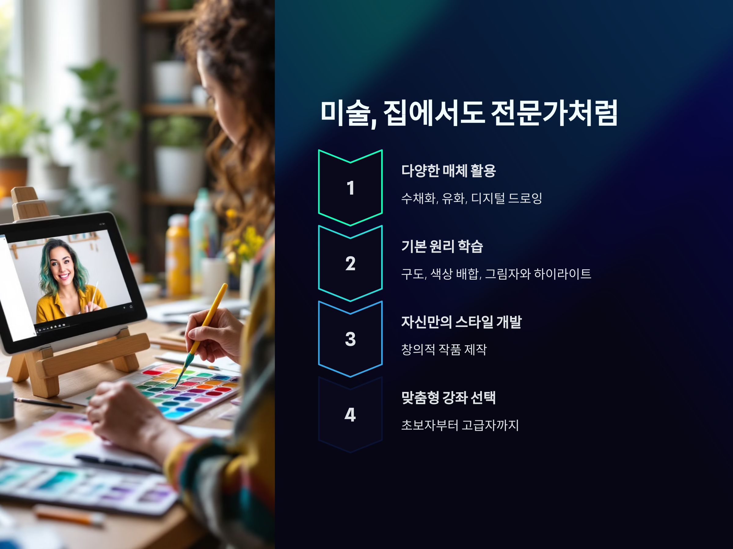 온라인 강좌를 통해 다양한 예술 작품을 접하고, 자기만의 스타일을 찾는 데 필요한 노하우를 얻어보세요. 또한, 꾸준한 피드백과 자기 평가를 통해 빠르게 실력을 향상시킬 수 있습니다.