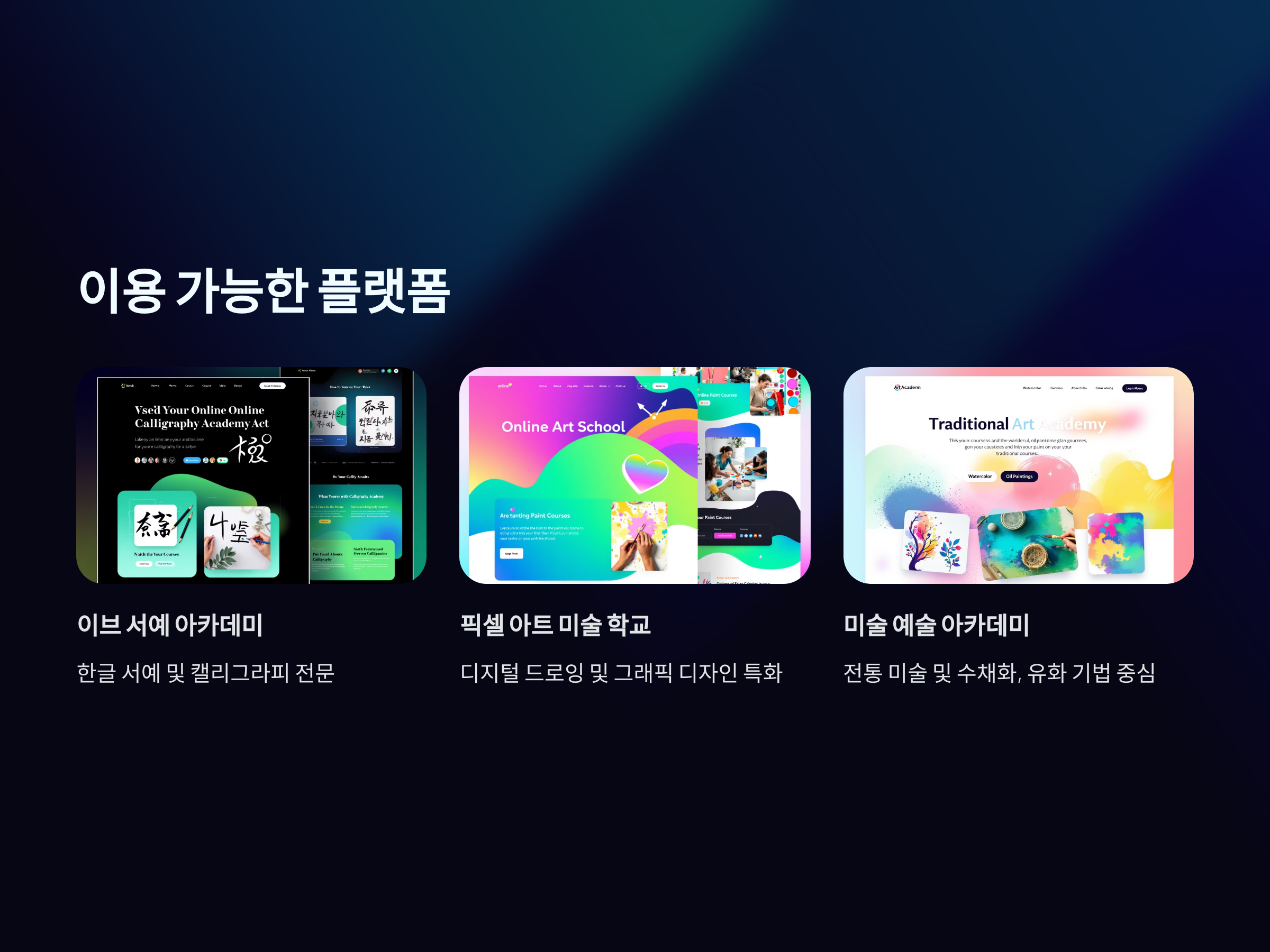 - 온라인 서예 클래스 : 다양한 서예 스타일을 배울 수 있는 멀티 클래스 제공