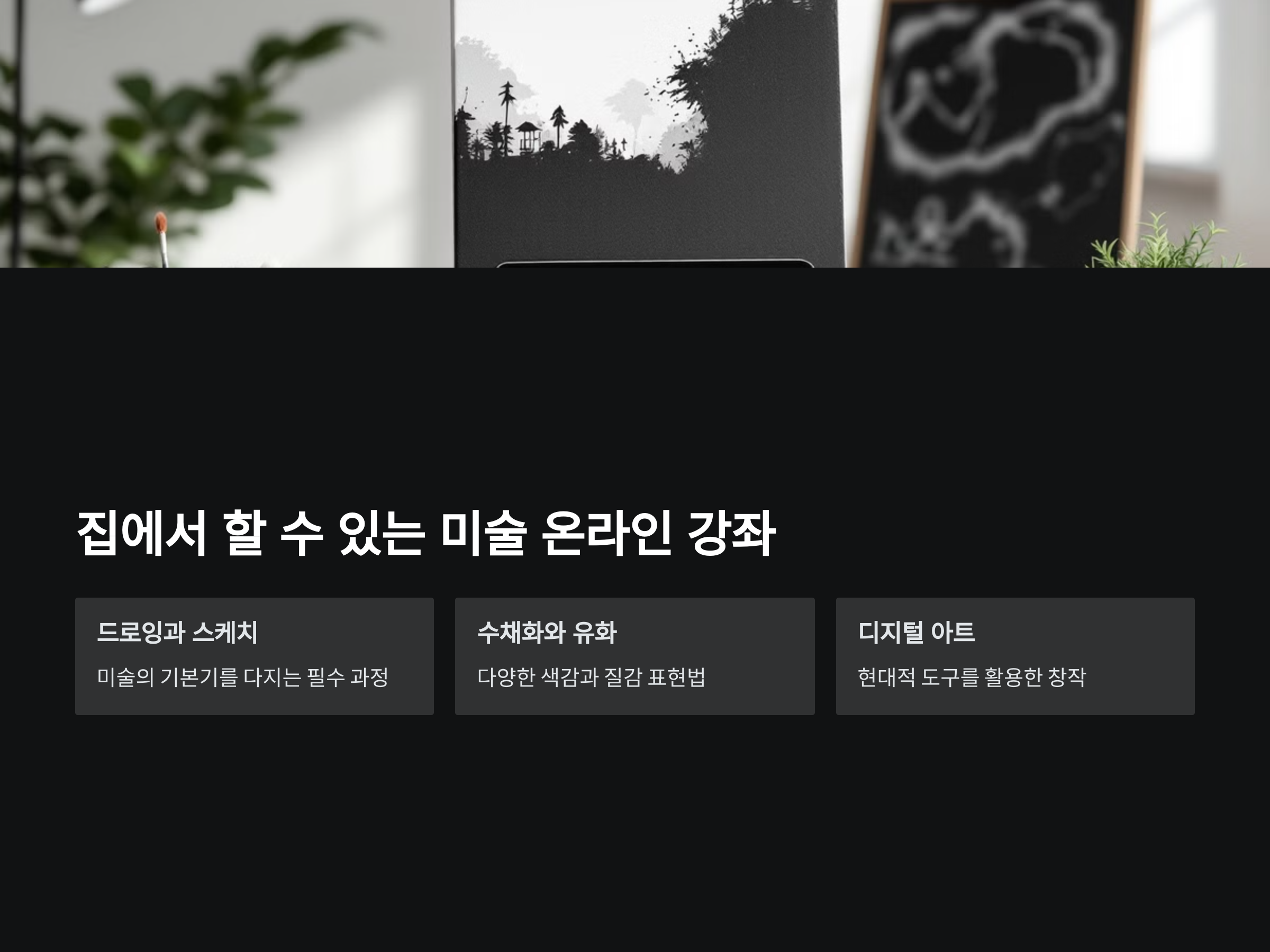 미술은 단순히 그림을 그리는 것이 아니라, 창의력과 감성적인 부분을 키울 수 있는 활동입니다. 미술을 온라인으로 배우면 시간을 절약하면서도 자기만의 작품을 만들 수 있는 기회를 제공받을 수 있습니다.