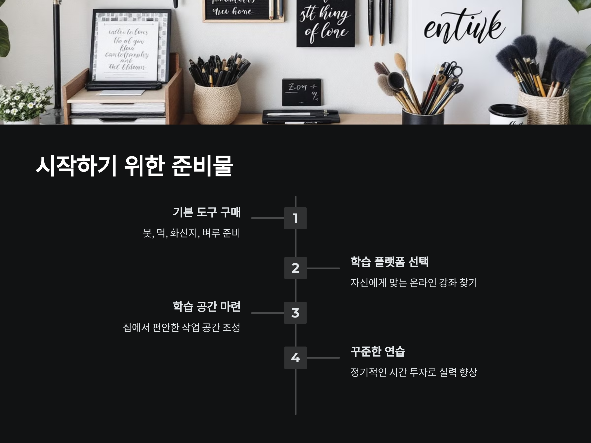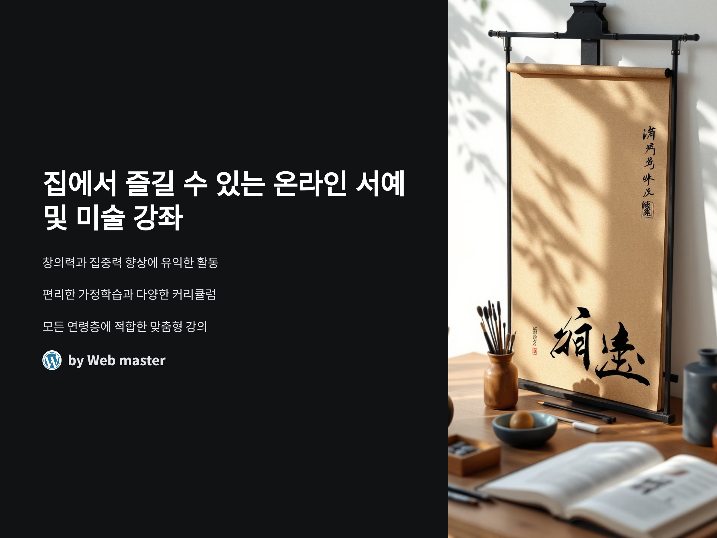 집에서 편안하게 예술을 배우고 싶다면, 다양한 온라인 강좌를 통해 서예와 미술을 동시에 배워보세요. 자기만의 스타일을 찾고, 창의력을 키우는 데 큰 도움이 될 것입니다.