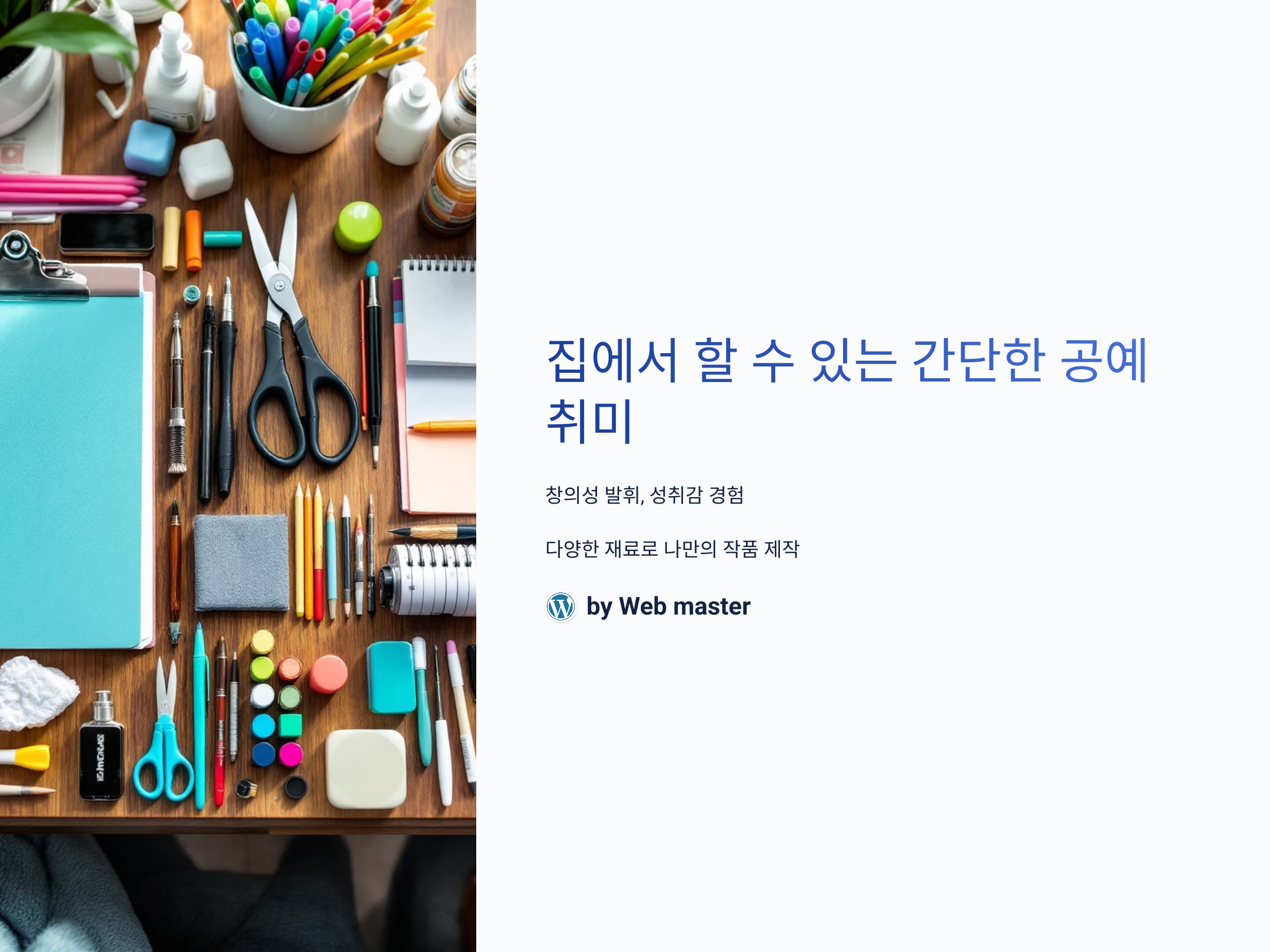 집에서 취미를 찾고 있다면 공예는 정말 좋은 선택이 될 수 있습니다. 복잡하지 않으면서도 창의성을 발휘할 수 있는 다양한 공예 활동들이 있습니다. 오늘은 집에서 쉽게 시작할 수 있는 공예 취미들을 소개해드릴게요. 혼자서 할 수 있는 간단한 작업부터 가족이나 친구와 함께 즐길 수 있는 재미있는 아이디어까지, 다양한 공예 활동을 통해 나만의 창작물을 만들어보세요.