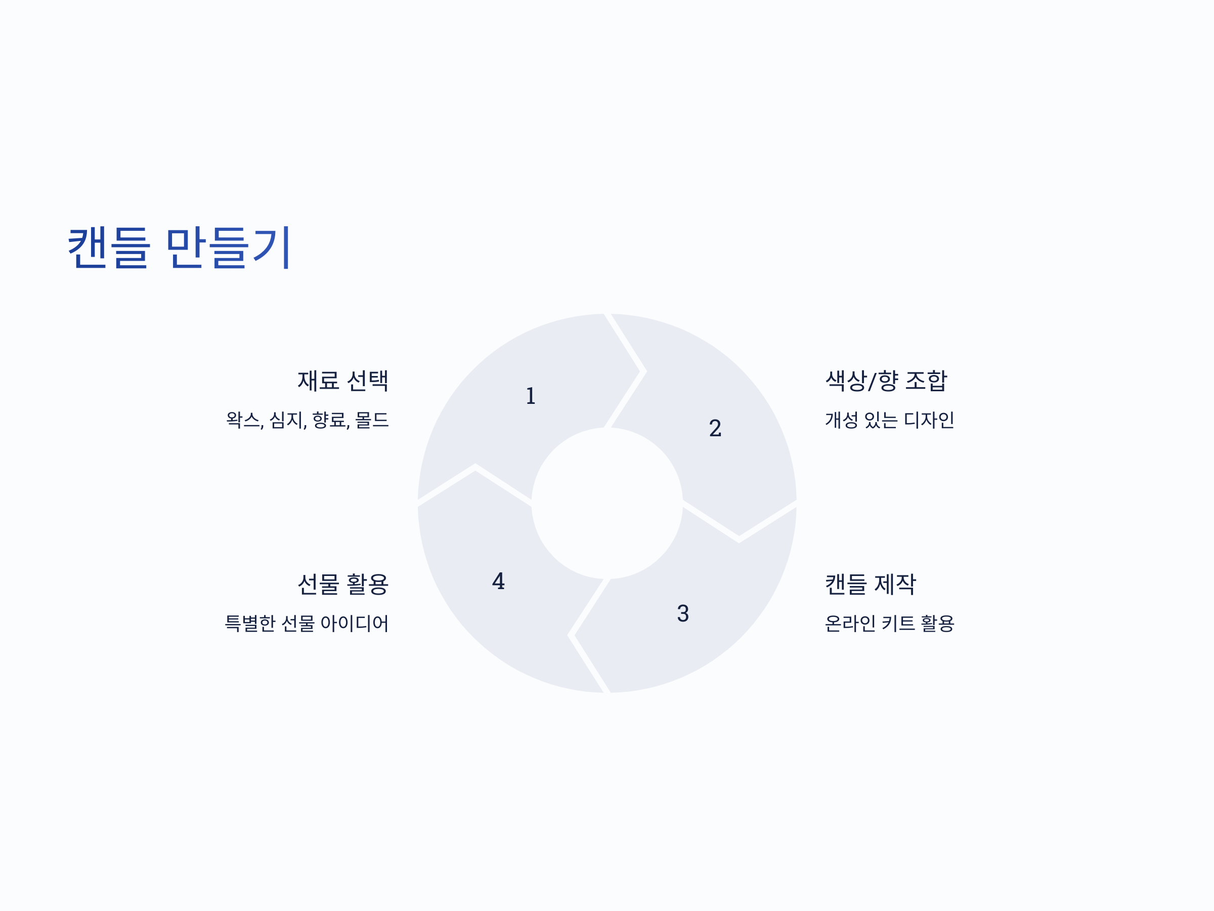 - 캔들 만들기는 온라인에서 다양한 키트를 구매할 수 있어 초보자도 쉽게 시작할 수 있습니다. 향과 색을 조합해 다양한 디자인을 만들어보세요.