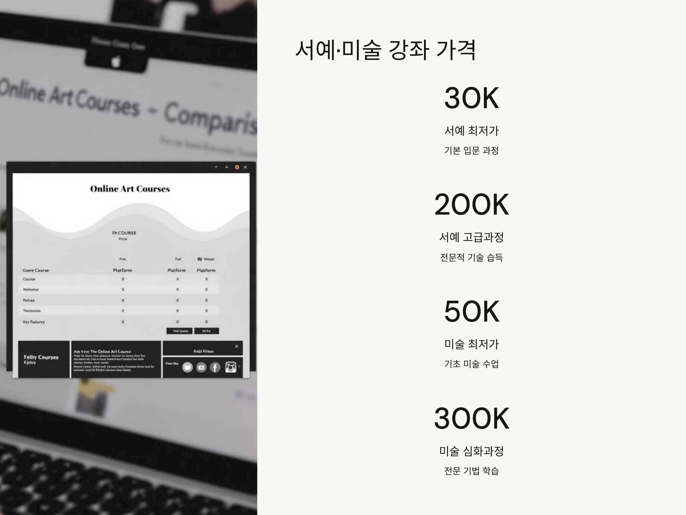 - 미술 강좌: 약 50,000원 ~ 300,000원