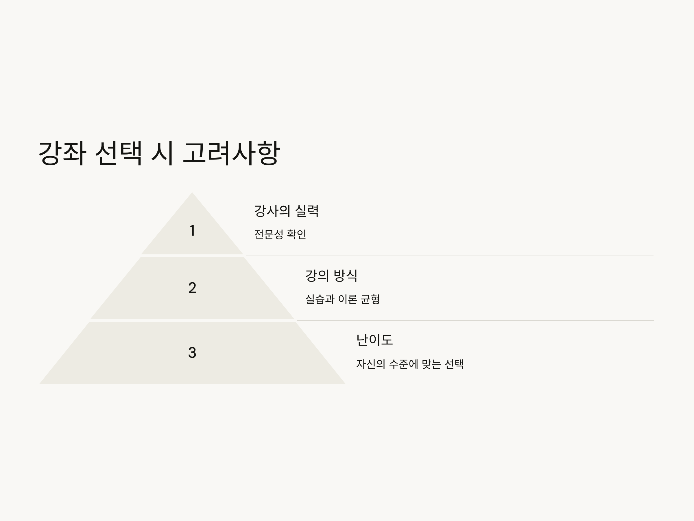 - 강사의 실력: 전문가 강사에게 배우는 것이 중요