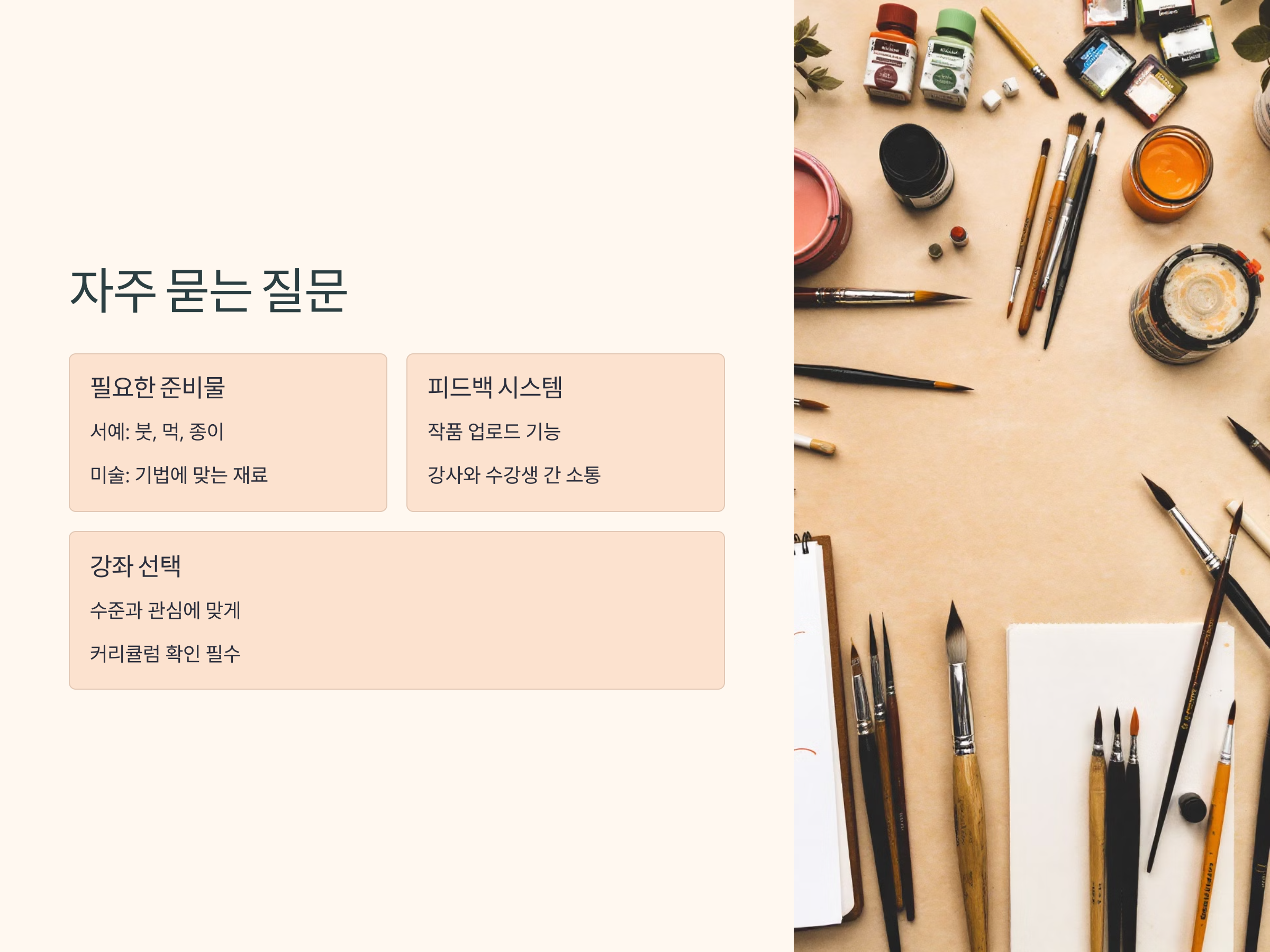 Q1: 서예와 미술 강좌를 시작하려면 무엇을 준비해야 하나요?