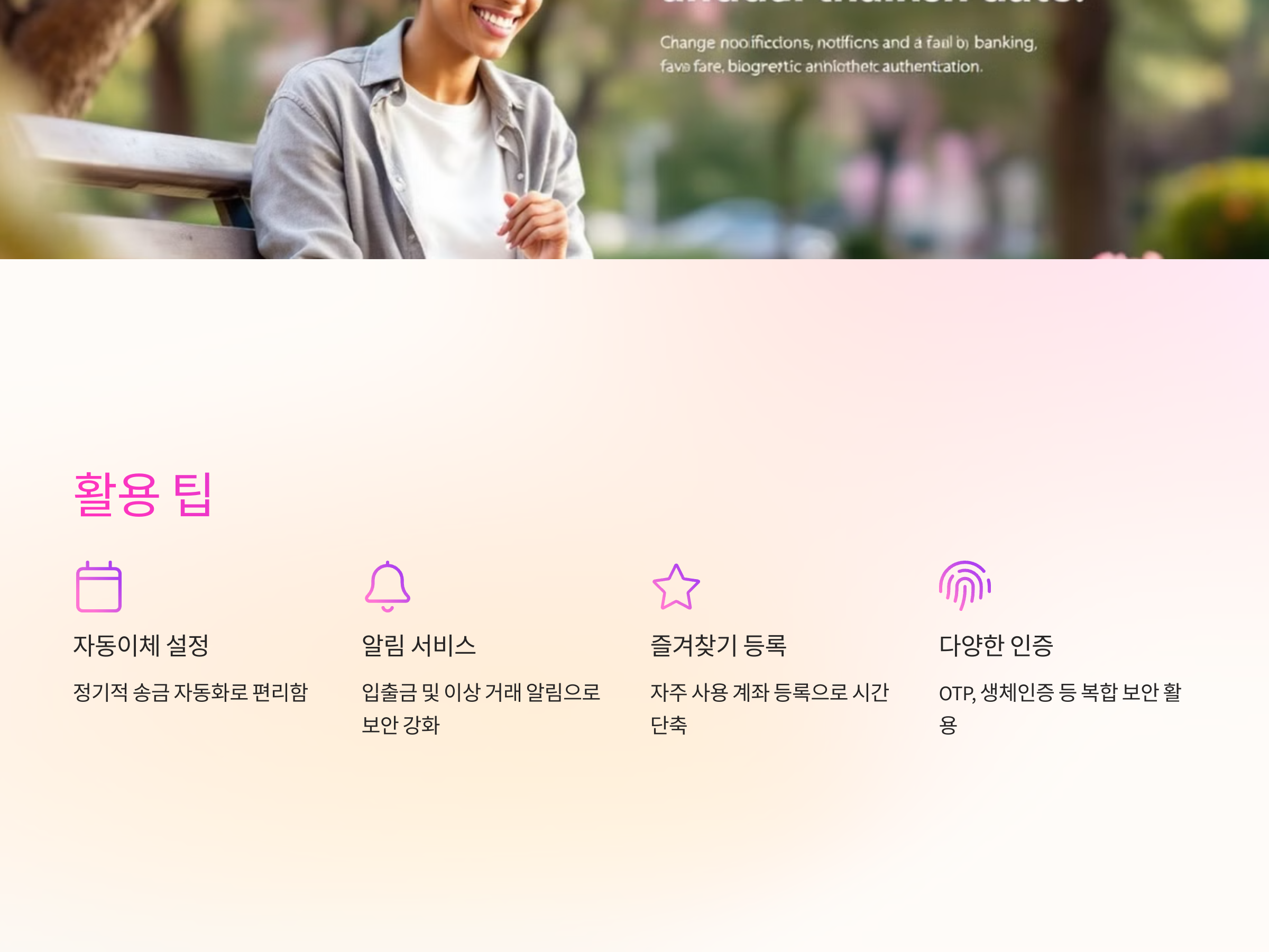 - 대출 및 투자: 온라인으로 대출 신청 및 금융상품 가입 가능
