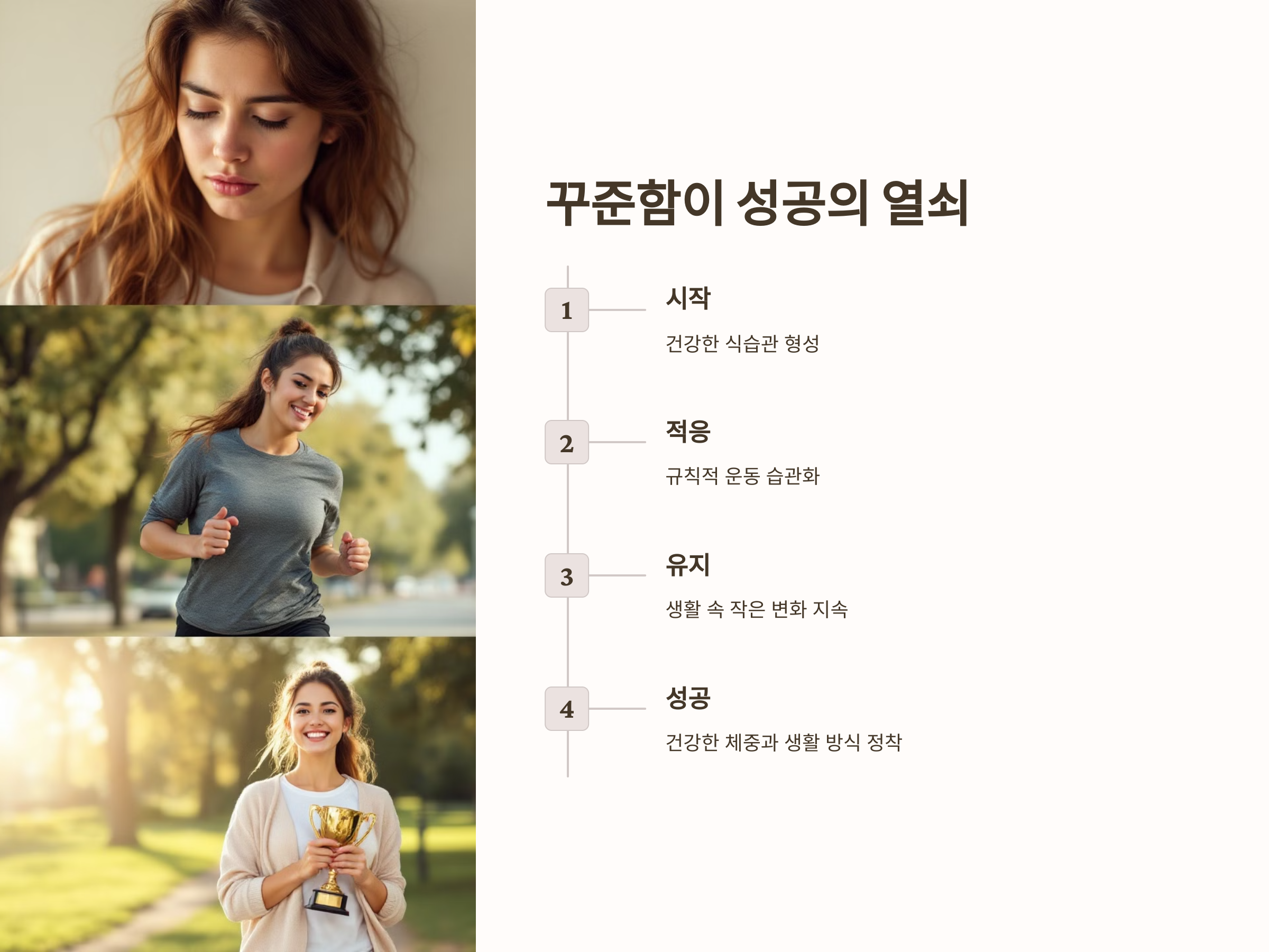 단기적인 다이어트 방법보다는 지속 가능한 다이어트를 위해 일상에서 작은 변화를 시작하는 것이 중요합니다. 일상적인 생활 속에서 작은 변화들이 모여 건강한 체중 감량을 돕습니다. 예를 들어, 일상적인 식습관과 운동 습관을 조금씩 개선해 나가는 것이 더 효과적입니다.