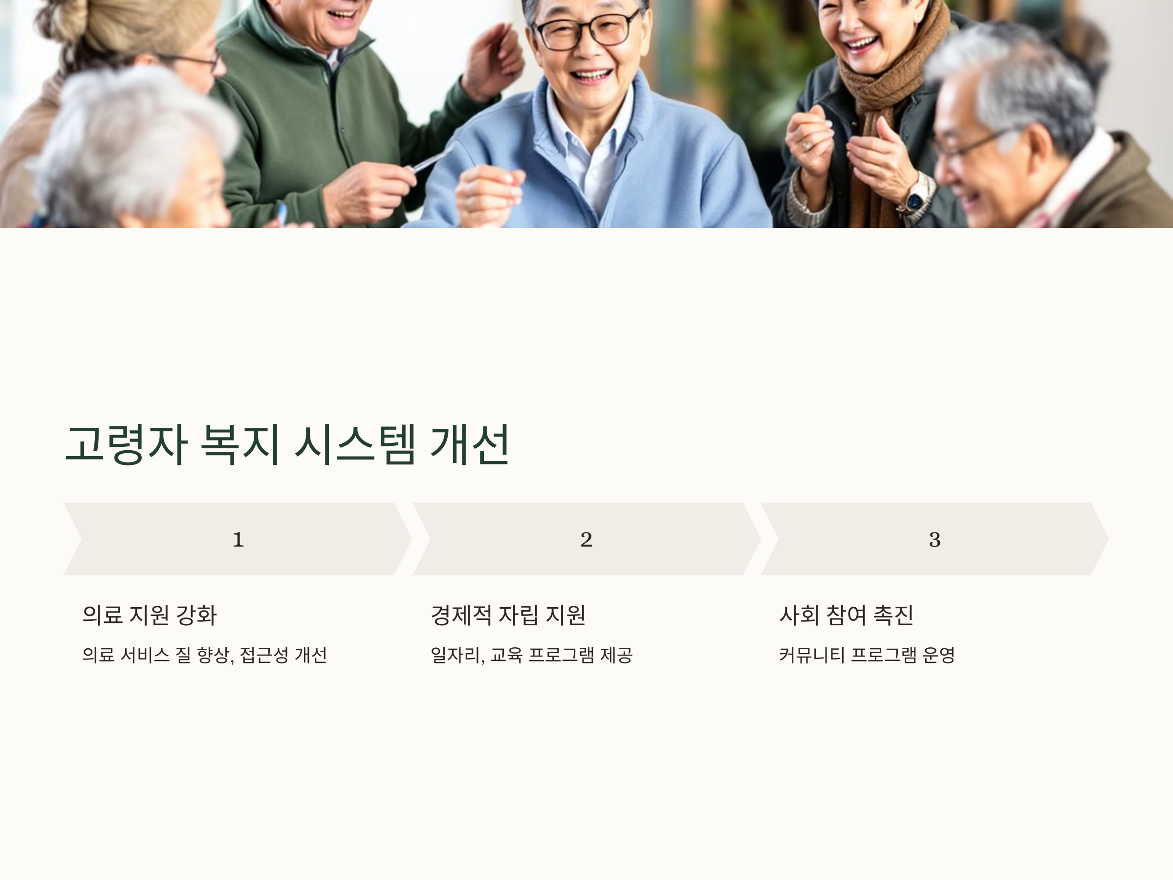 고령 사회가 확대됨에 따라 복지 시스템의 필요성은 더욱 강조되고 있습니다. 이미 우리나라는 다양한 고령자 복지 제도를 운영하고 있지만, 더 이상 기존 시스템만으로는 고령화 사회를 충분히 대비하기 어렵습니다. 사회 복지의 기반이 되는 정책들은 기존보다 더욱 강화되고 발전해야 합니다.