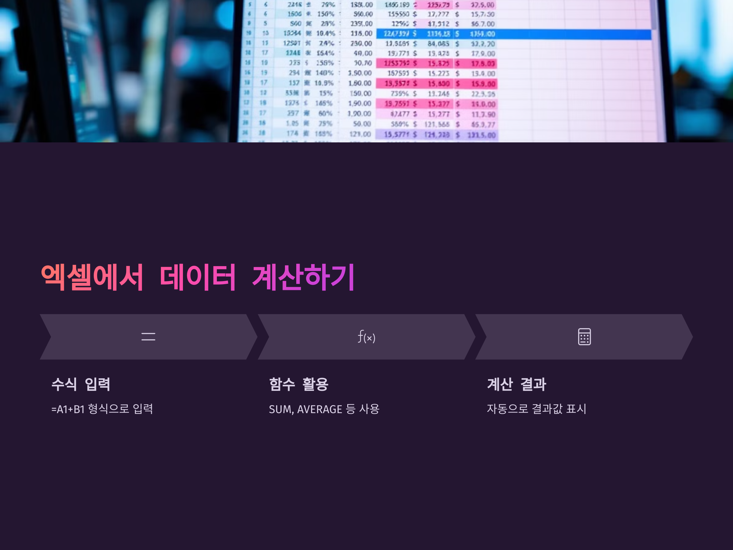 엑셀의 가장 강력한 기능 중 하나는 계산 기능입니다. 초보자는 기본적인 수식과 함수부터 익히는 것이 중요합니다.