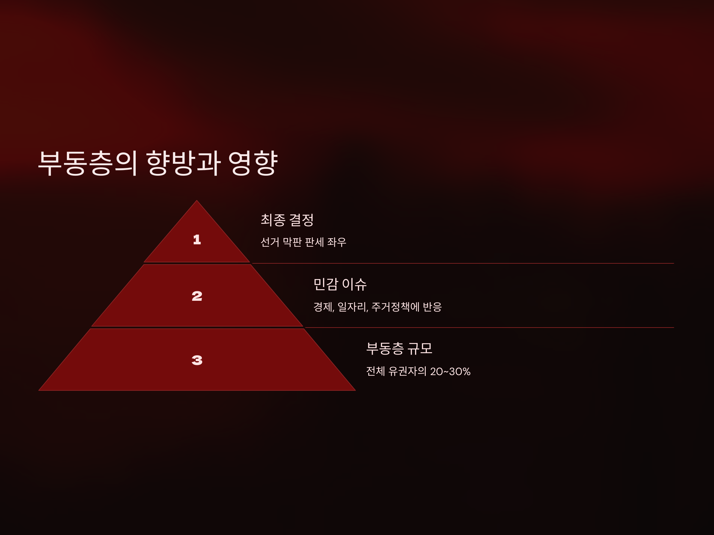 부동층은 주로 20~40대 젊은 층과 정치적 중도층에서 많이 분포되어 있습니다. 이들은 경제 상황, 일자리 문제, 주거 정책 등에 민감하게 반응하며, 특정 정당의 공약이 직접적인 영향을 미칠 수 있습니다. 또한, 최근 SNS와 온라인 커뮤니티에서의 여론 형성이 중요한 역할을 하고 있어, 온라인 홍보 전략도 정당별로 차별화되고 있습니다.