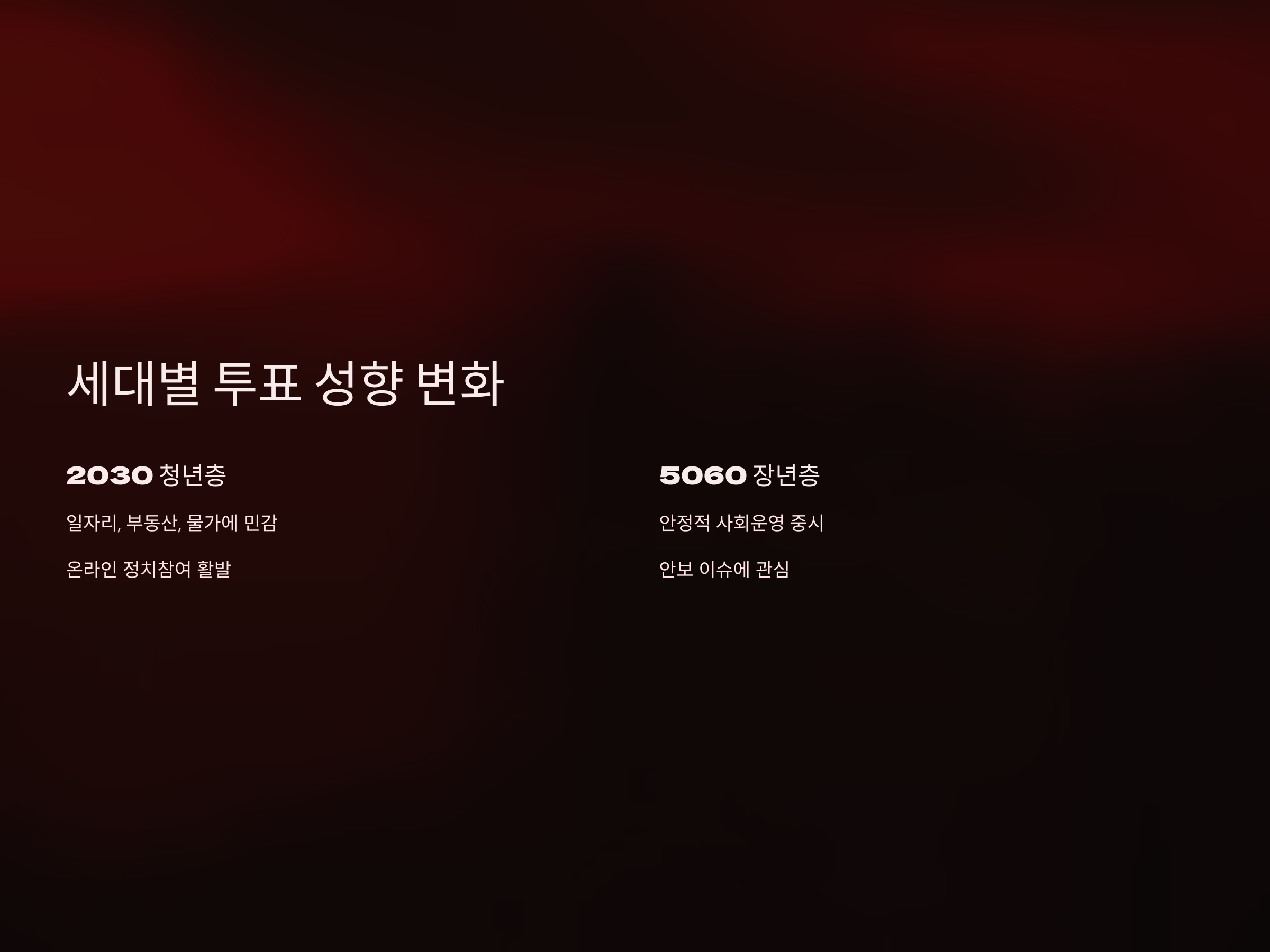 2030 청년층과 5060 장년층의 투표 성향 변화