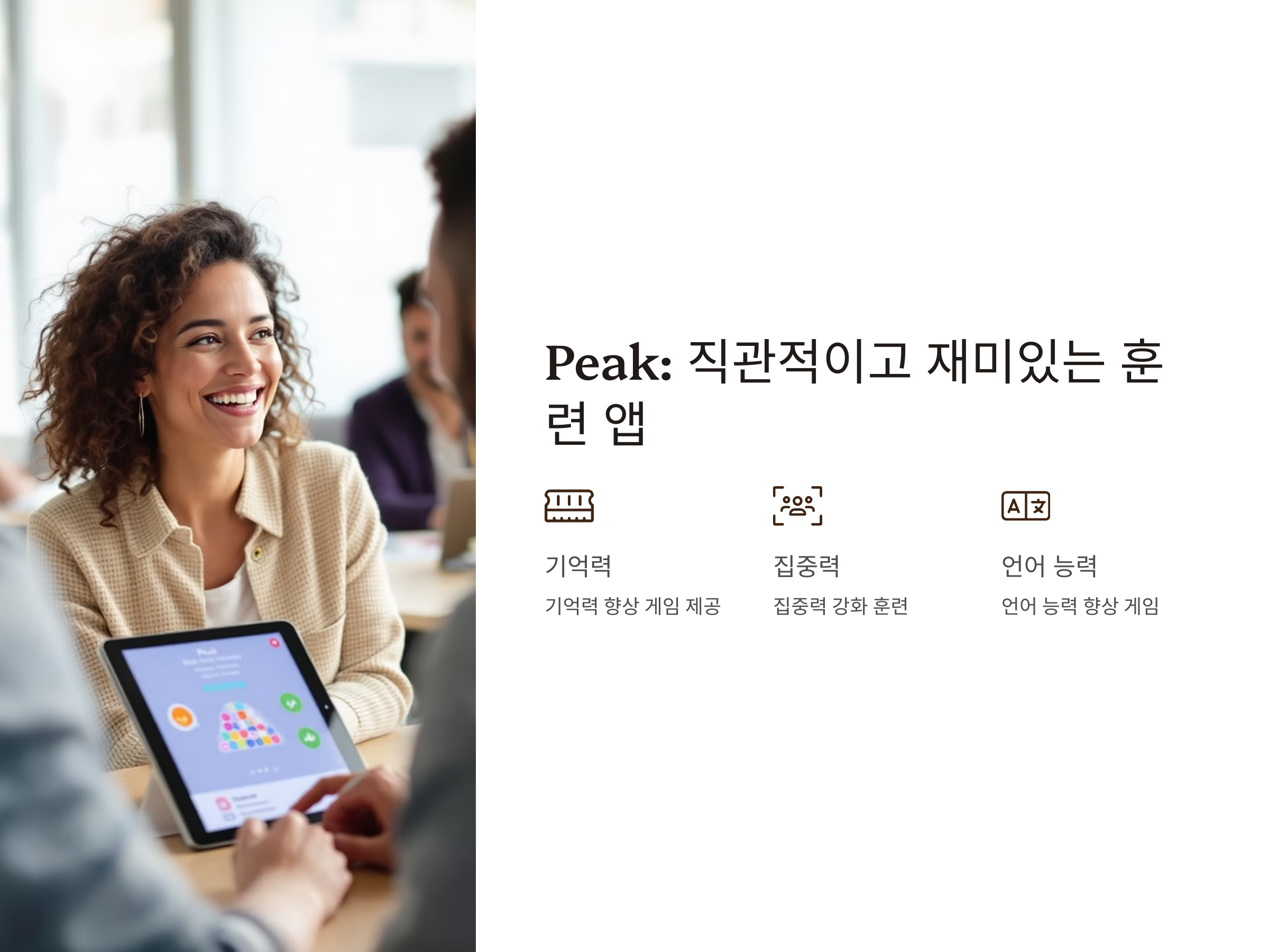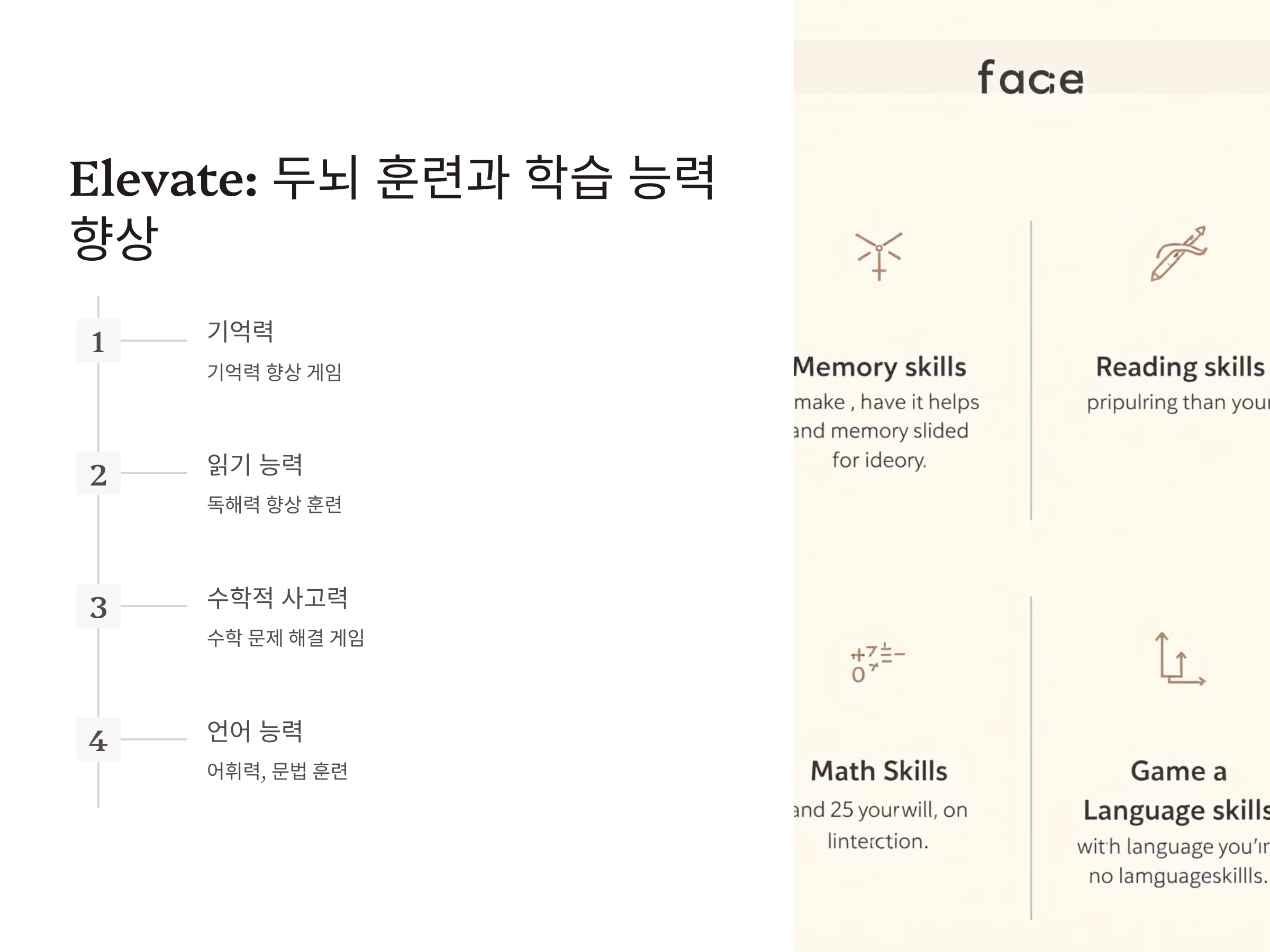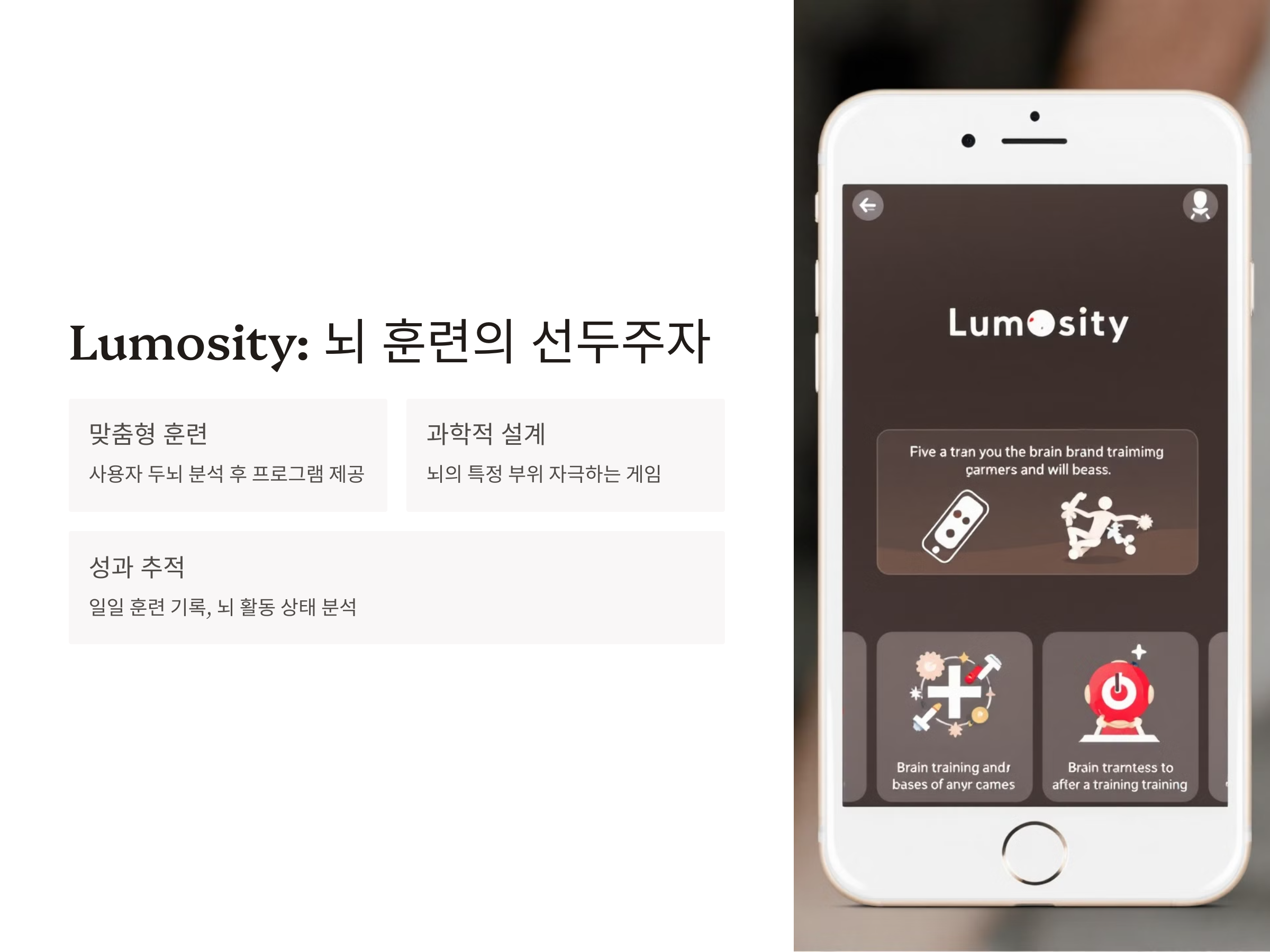 - 기억력, 수학, 읽기 등 다양한 훈련 게임 제공
