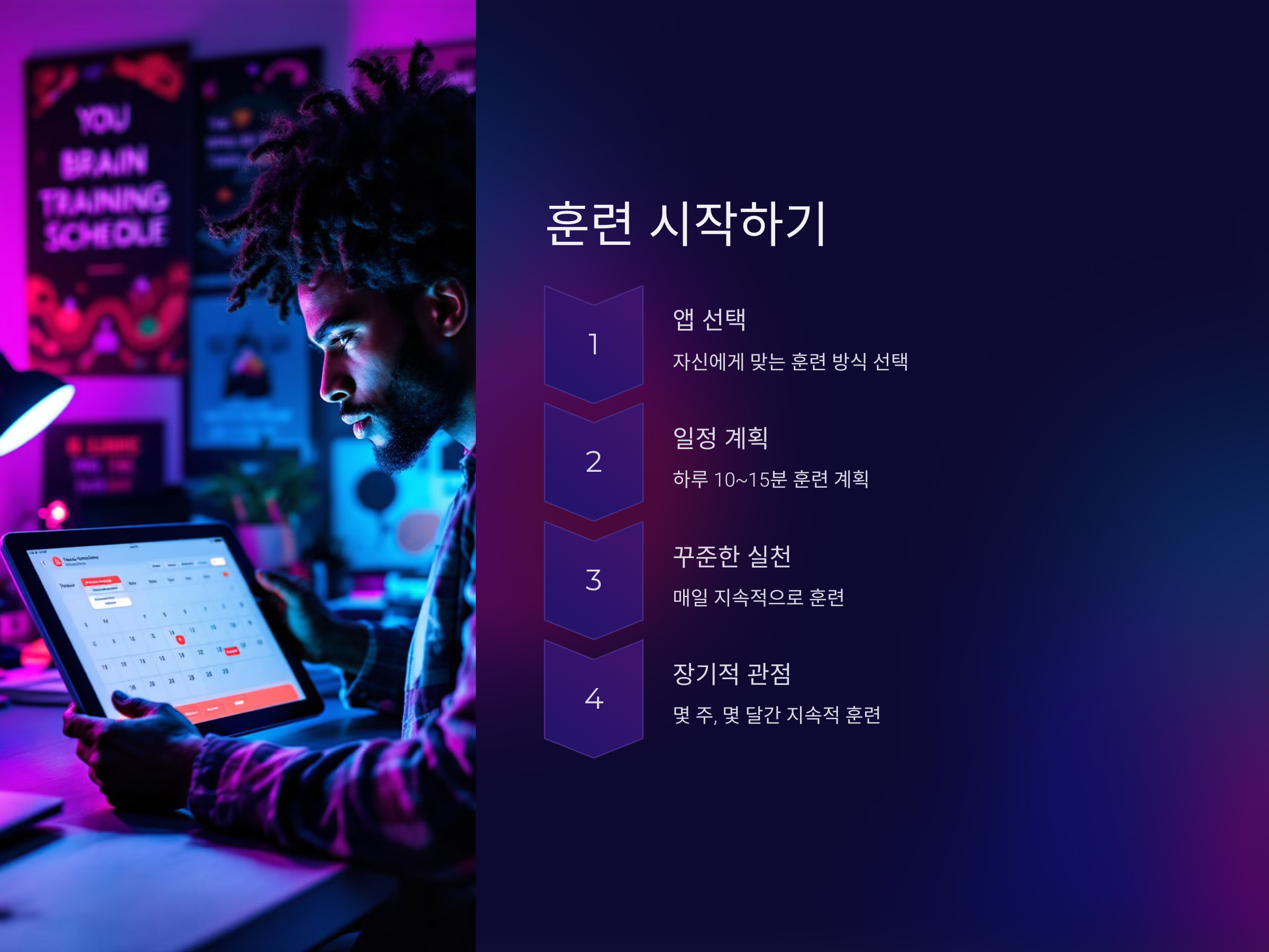 두뇌 훈련 앱을 통해 치매 예방을 시작하려면, 우선 자신에게 맞는 앱을 선택하는 것이 중요합니다. 각 앱은 제공하는 훈련 방식과 게임 유형이 다르기 때문에, 자신이 가장 잘 맞는 앱을 선택하는 것이 중요합니다. 선택한 앱을 꾸준히 사용하는 것이 핵심입니다. 하루 10~15분 정도의 훈련을 꾸준히 진행하면, 뇌를 자극하고 두뇌 기능을 개선하는 데 큰 도움이 됩니다.