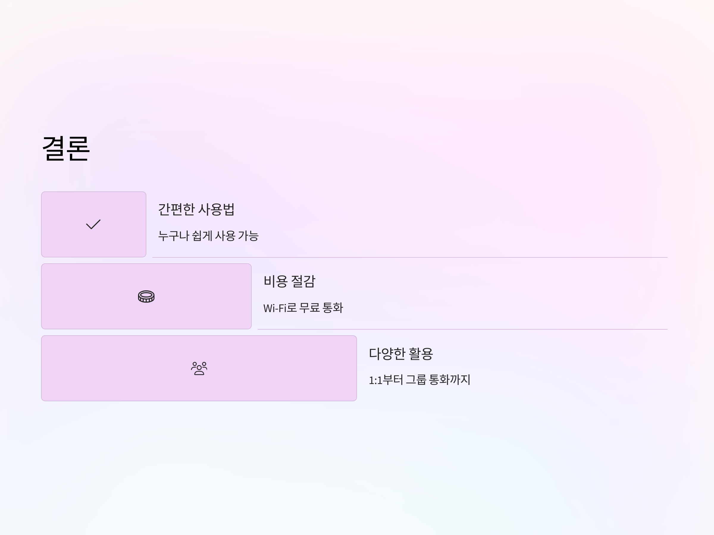 - Wi-Fi 환경에서는 안정적인 음성 통화를 즐길 수 있습니다. Wi-Fi에 연결되면 데이터가 아닌 인터넷을 통해 통화가 이루어지기 때문에 속도와 품질이 더 우수합니다.