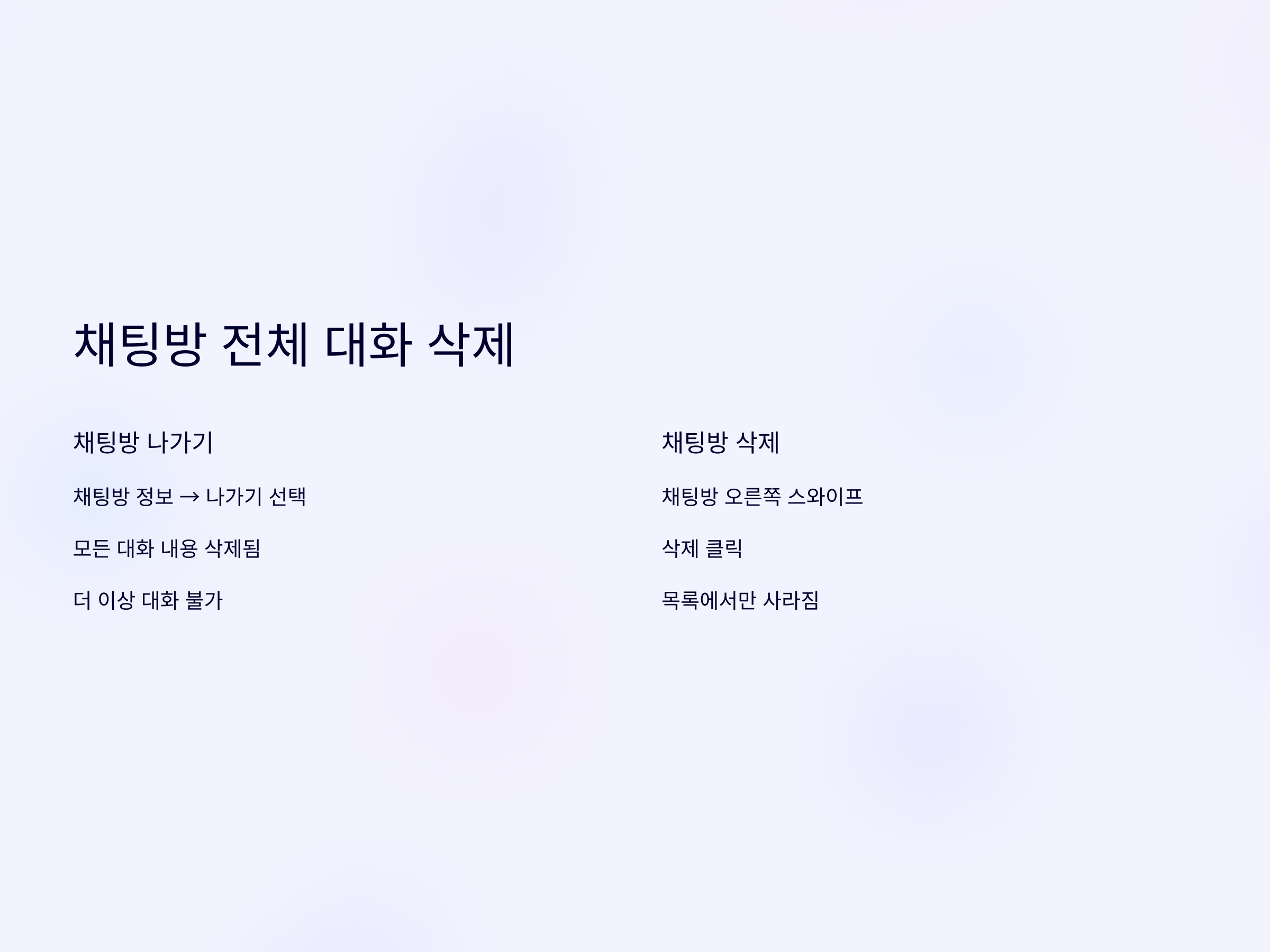 - "삭제"를 클릭하면 해당 채팅방이 목록에서 완전히 사라집니다.