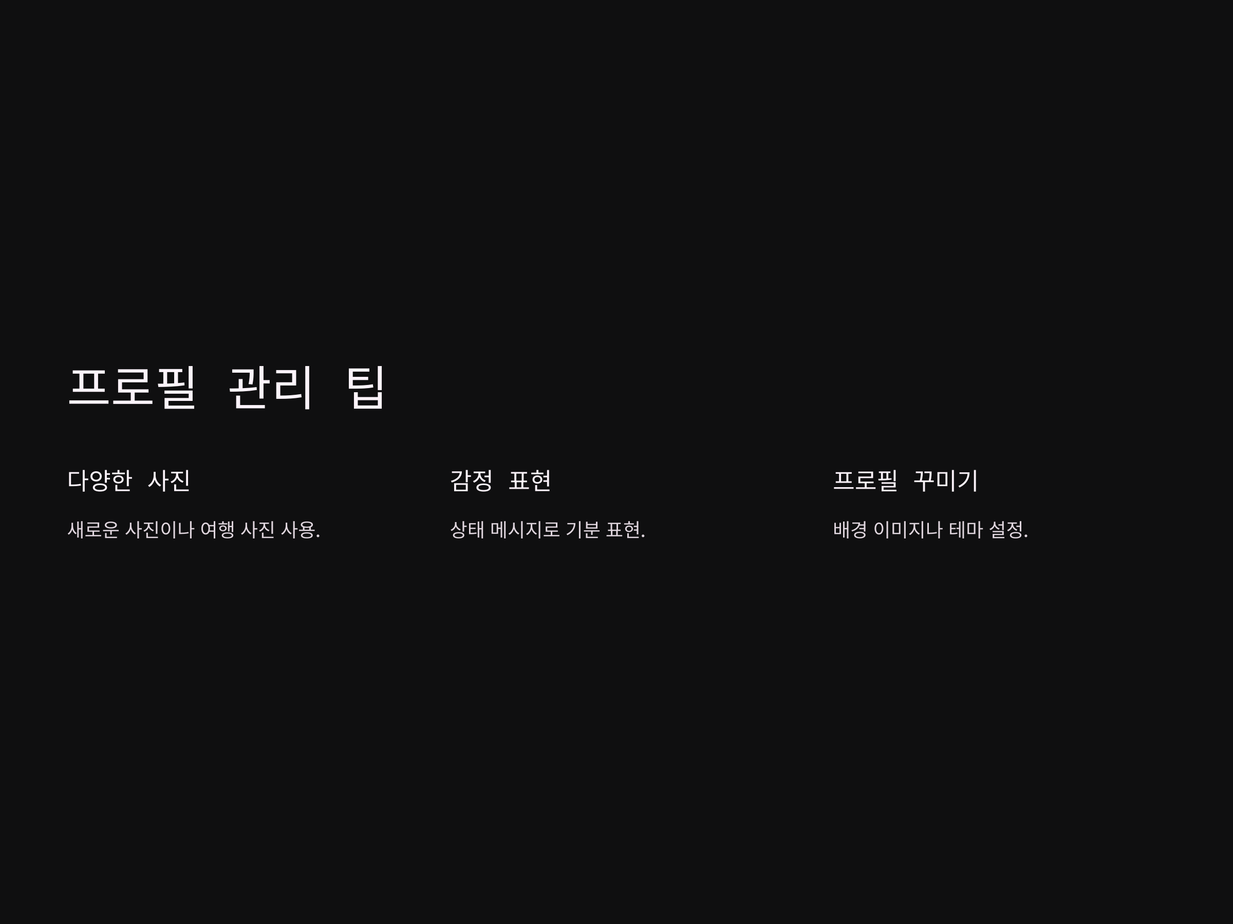 프로필 사진은 나를 대표하는 중요한 요소입니다. 새로운 사진을 찍거나, 여행지에서 찍은 사진 등을 사용해 보세요. 자주 변경하는 것도 좋은 방법입니다.