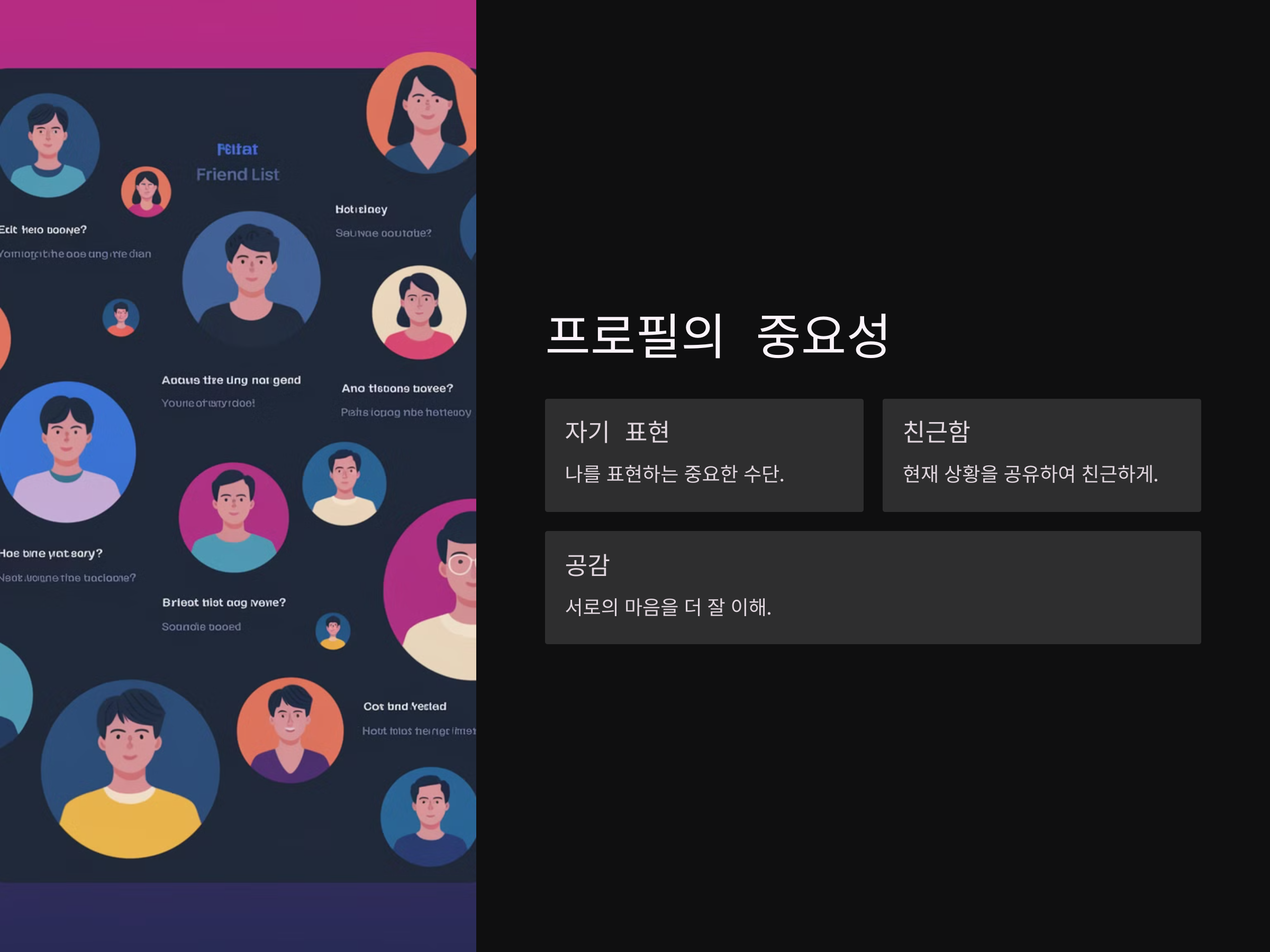 프로필 사진과 상태 메시지는 단순한 꾸밈이 아니라, 카카오톡에서 나를 표현하는 중요한 수단입니다. 친구들이 나를 잘 인식할 수 있도록 꾸미고, 상태 메시지로 나의 현재 상황을 공유하면 더 친근하게 다가갈 수 있습니다. 또한, 나의 기분이나 감정을 표현할 수 있기 때문에 서로의 마음을 더 잘 이해할 수 있게 됩니다.