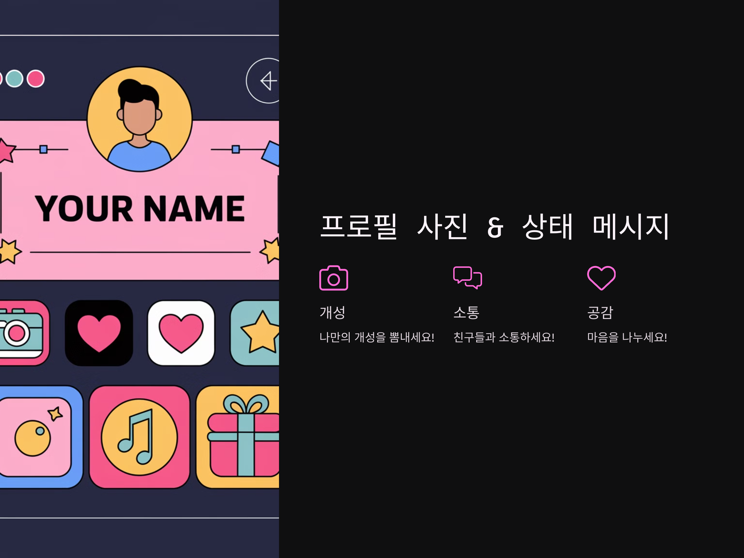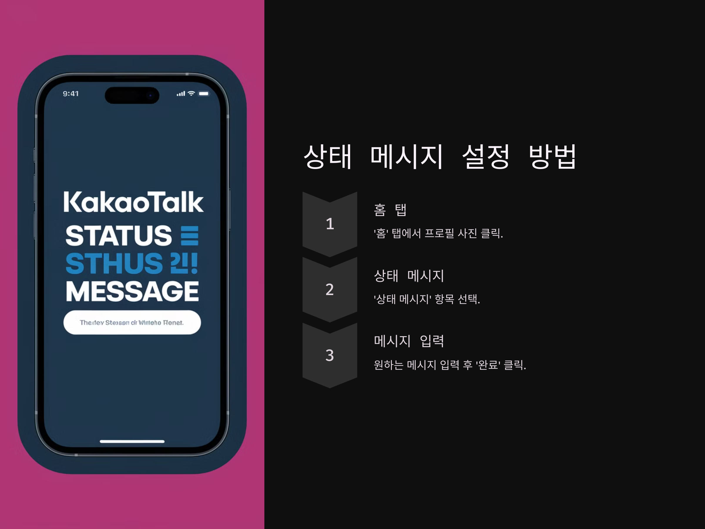 상태 메시지를 사용하면 내 기분을 친구들에게 알릴 수 있습니다. 기분이 좋을 때는 긍정적인 메시지를, 바쁜 일정을 보낼 때는 "바빠요" 같은 메시지를 설정해보세요.