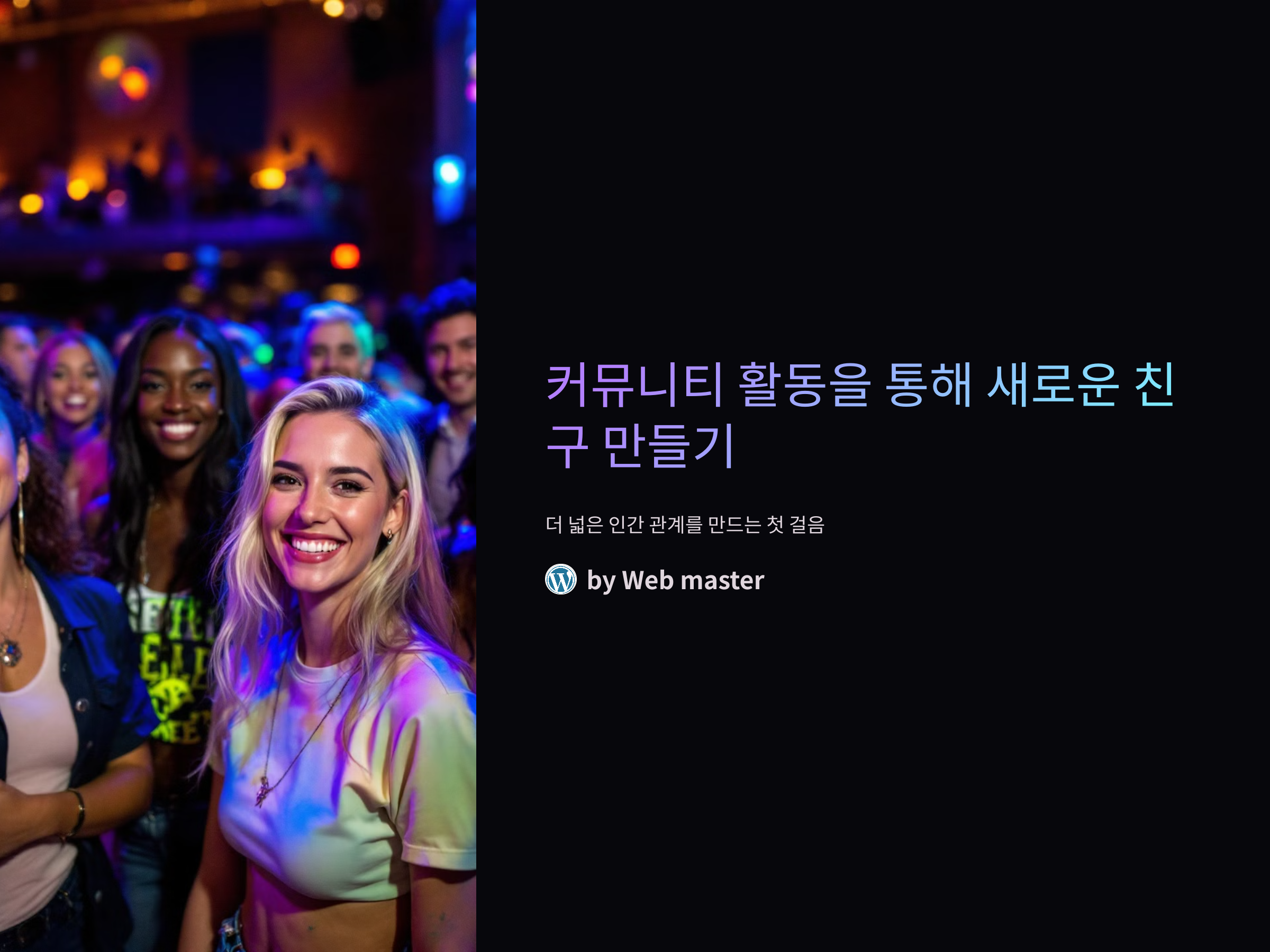 커뮤니티 활동은 단순히 정보를 공유하는 장소가 아니라, 사람들과 직접 소통하는 중요한 기회입니다. 활동을 통해 비슷한 관심사를 가진 사람들과 자연스럽게 친해질 수 있기 때문에, 실제로 친구를 만들 수 있습니다.