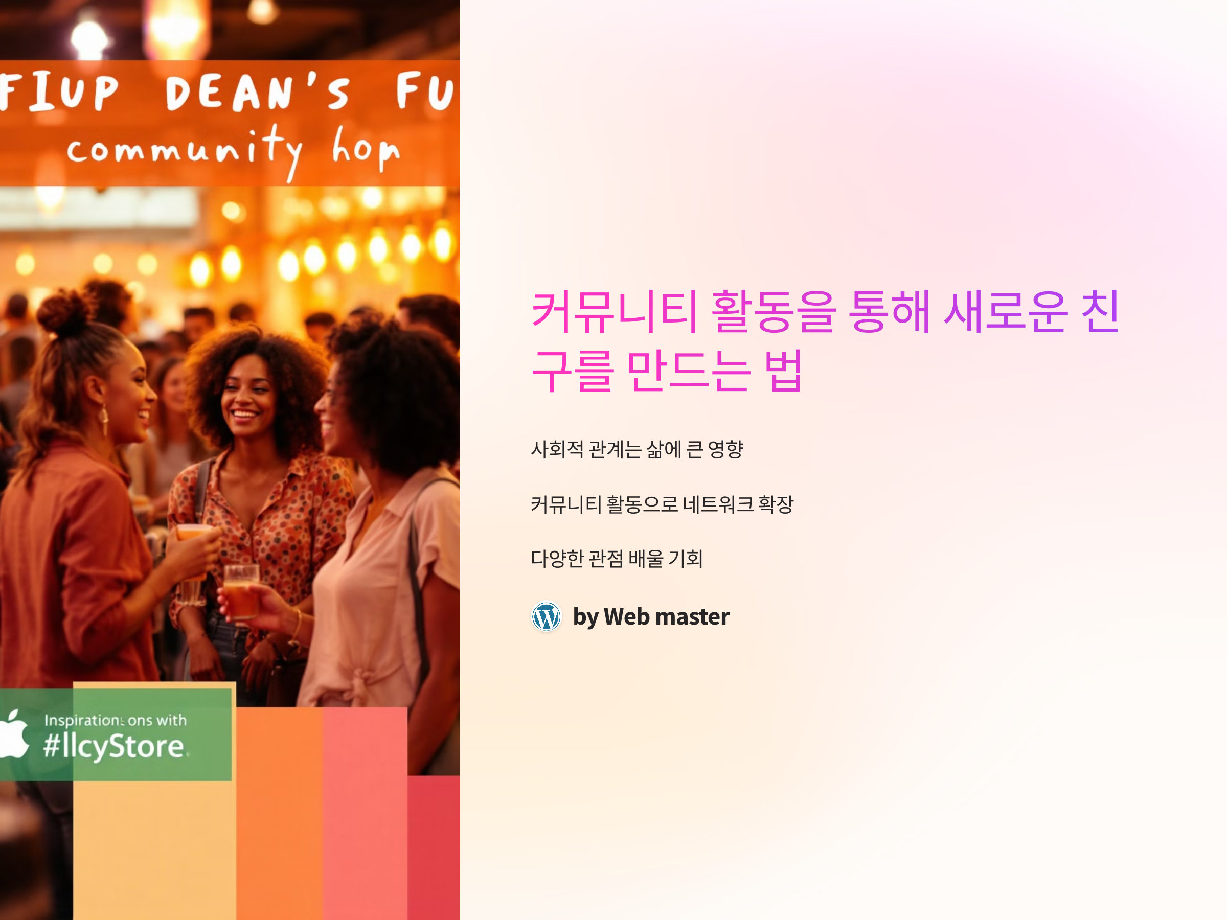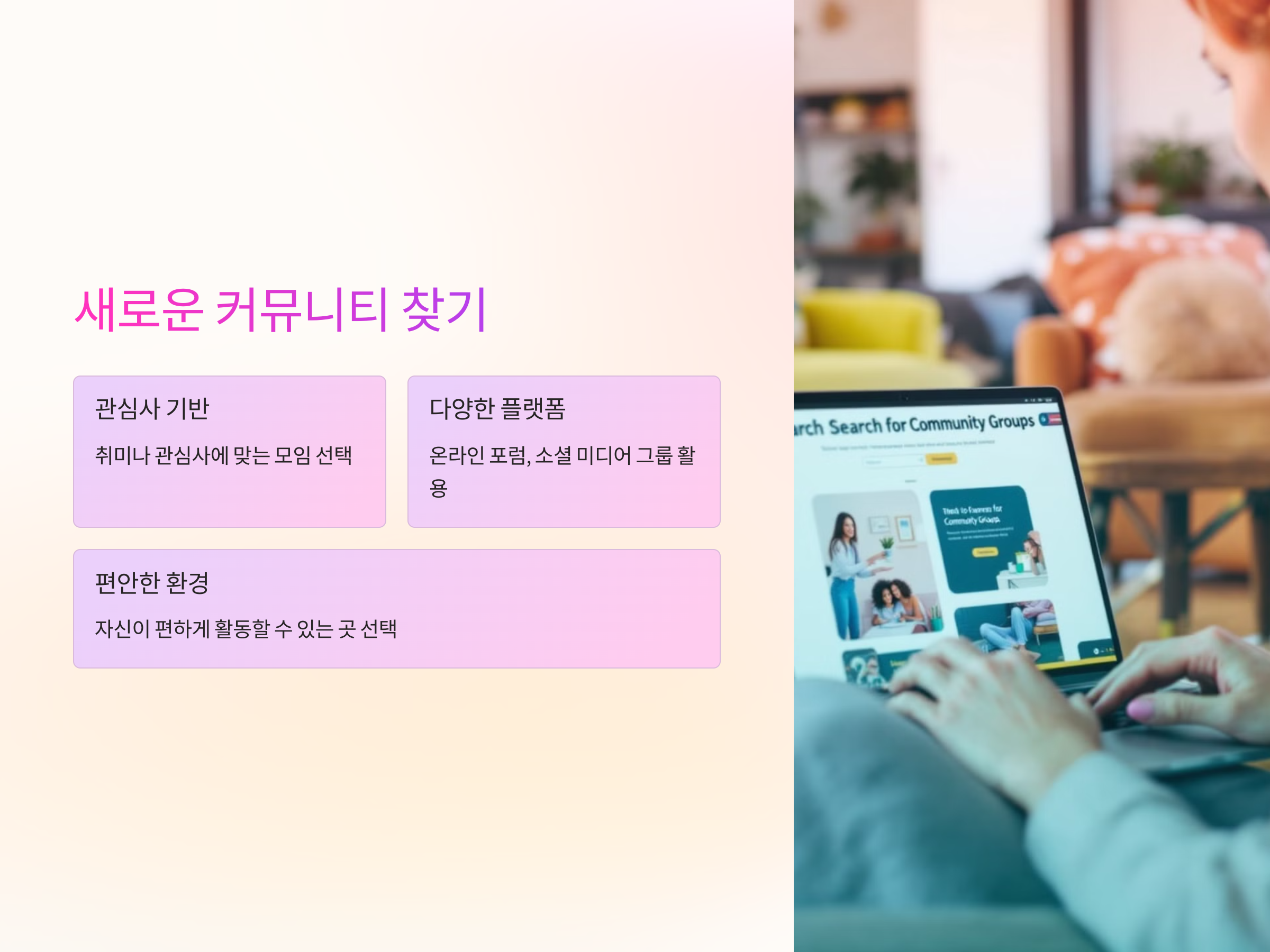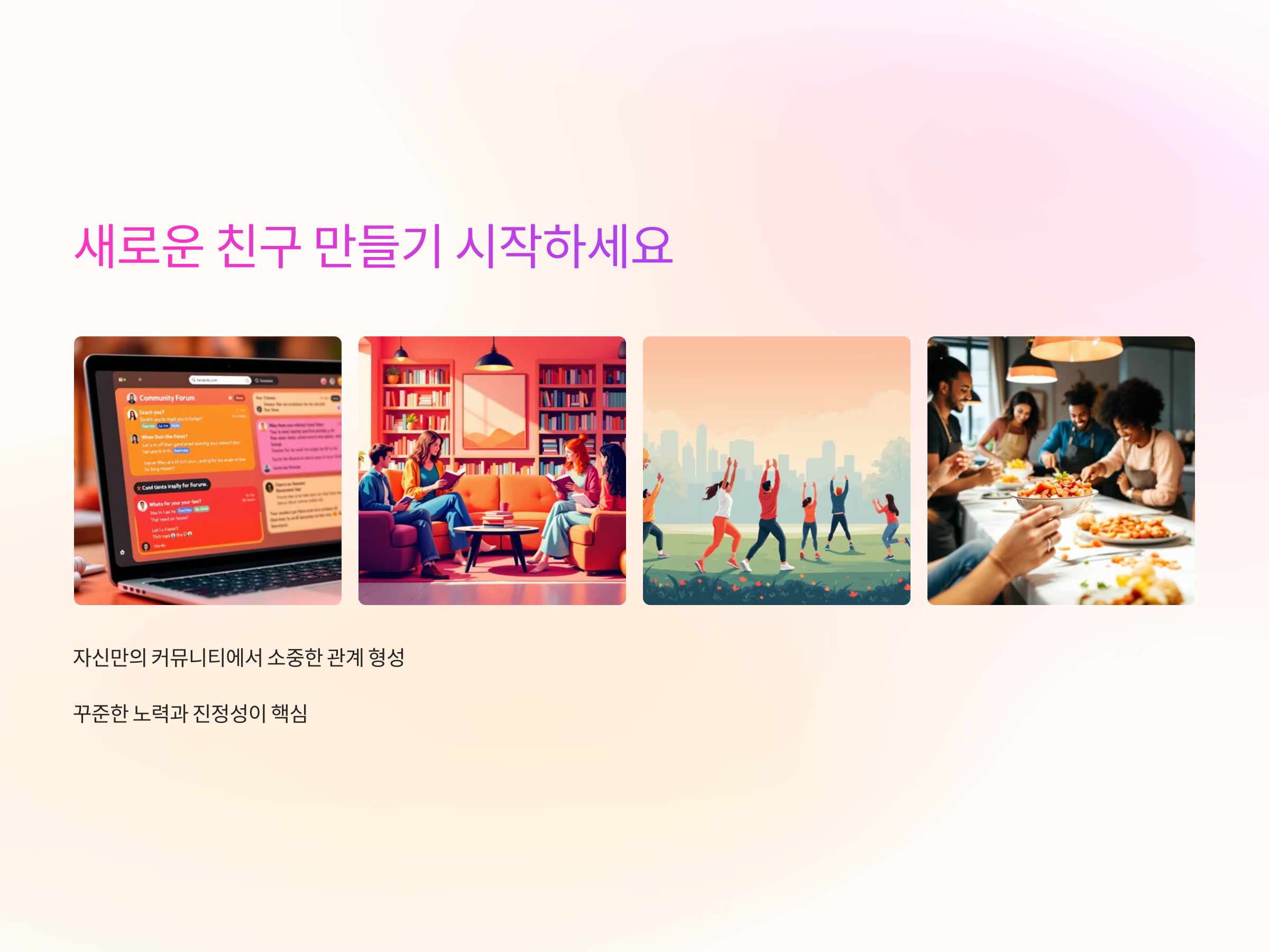 그렇다면 이제, 당신도 자신만의 커뮤니티에서 새로운 친구들을 만나고, 소중한 관계를 만들어보세요!