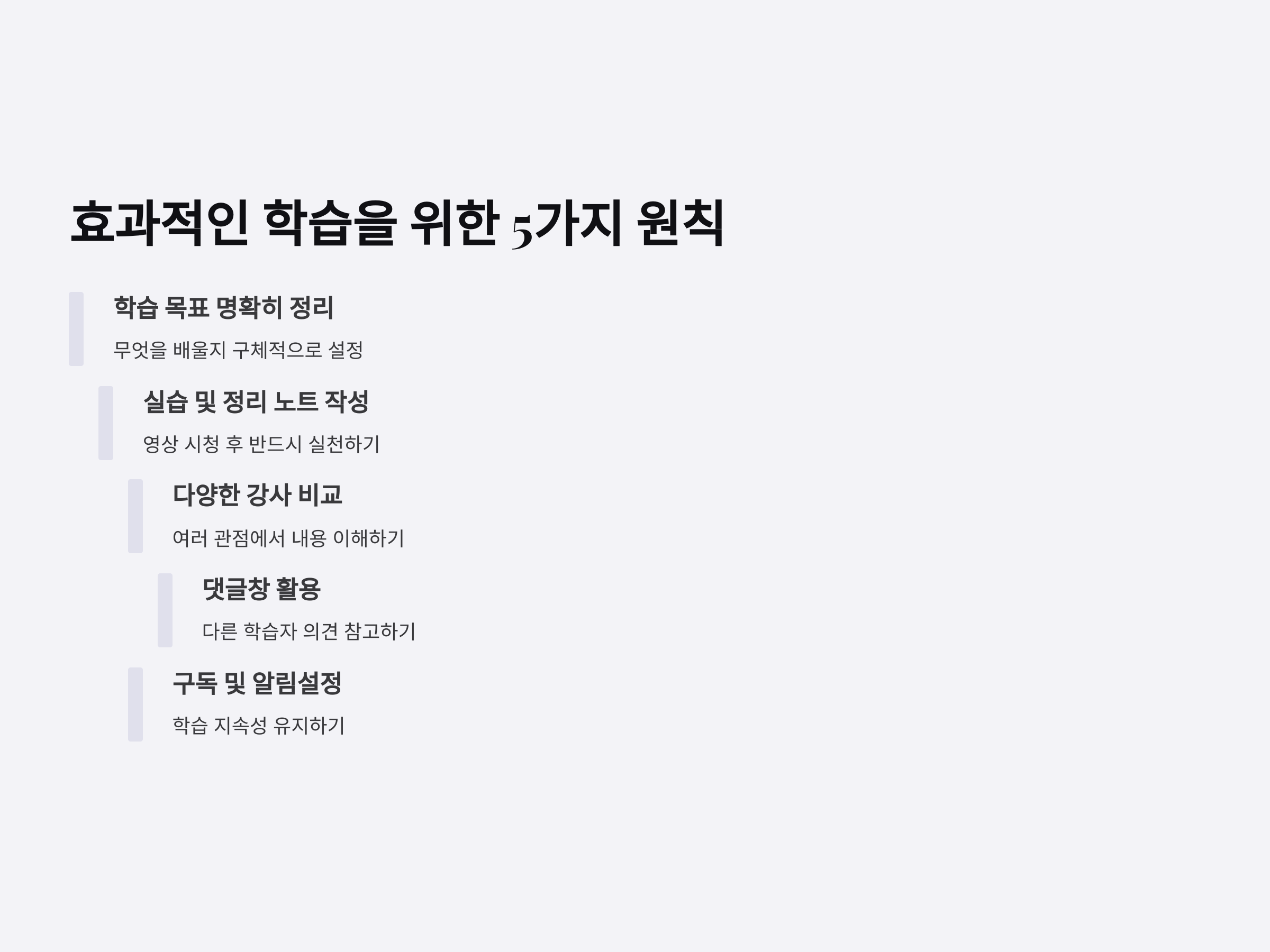 무료 강의라고 해서 아무렇게나 들으면 안 됩니다. 첫째, 강좌 시작 전 학습 목표를 명확히 정리하세요. 둘째, 영상 시청 후 반드시 실습 또는 정리 노트를 남기는 습관을 들이세요. 셋째, 한 강좌를 여러 번 보는 것보다 다양한 강사를 비교해보는 것이 좋습니다. 넷째, 댓글창에서 다른 학습자의 의견을 참고하면 학습의 폭이 넓어집니다. 다섯째, 구독 및 알림설정을 통해 새로운 강좌를 빠르게 받아보는 것이 학습 지속성에 도움이 됩니다. 이 다섯 가지를 실천하면 유료 못지않은 학습 효과를 얻을 수 있습니다.