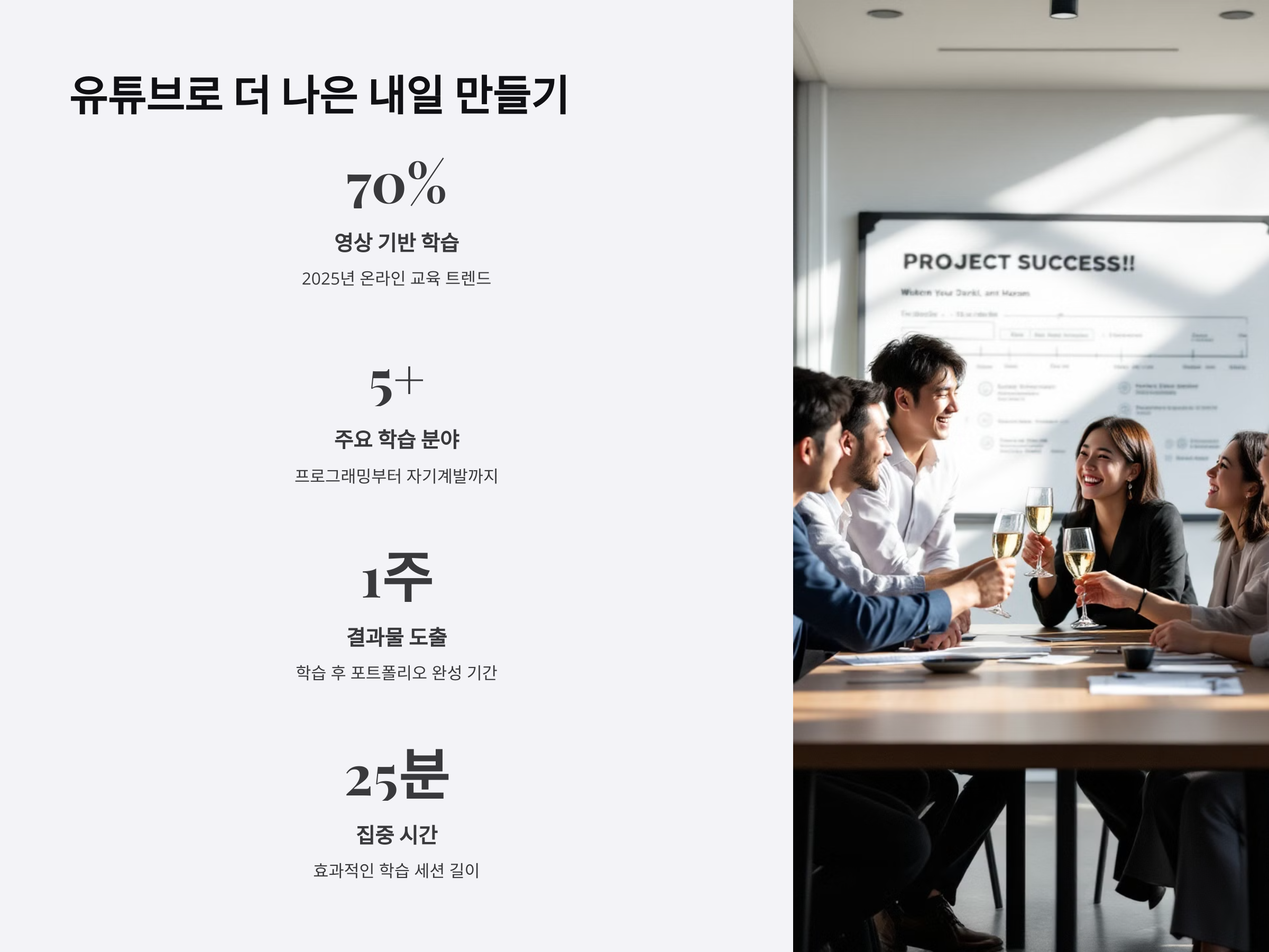 코로나 이후 급변한 디지털 환경 속에서 평생교육의 중요성이 더욱 부각되면서, 유튜브는 이제 단순한 엔터테인먼트 플랫폼을 넘어 학습의 중심지로 자리잡고 있습니다. 특히 최신 AI, 데이터 분석, 디자인, 프로그래밍 등의 기술을 무료로 배울 수 있다는 점에서, 취업 준비생, 직장인, 프리랜서 모두에게 매력적인 자원이 되고 있습니다. 유튜브는 '2025년 온라인 학습의 70%는 영상 기반이 될 것'이라는 교육 트렌드를 견인하고 있으며, 이는 광고 수익뿐 아니라 사용자 체류 시간 증가로도 이어지고 있습니다. 또한, 유튜브 알고리즘은 개인 맞춤 추천으로 사용자 몰입도를 극대화하며, 학습 효율을 끌어올리는 데 기여합니다. 이 글에서는 유튜브에서 무료 강좌를 제대로 찾고, 체계적으로 학습하며, 실제 업무나 프로젝트에 적용할 수 있는 팁을 소개합니다. 끝까지 읽으시면 당신의 디지털 역량이 한층 더 강화될 것입니다.