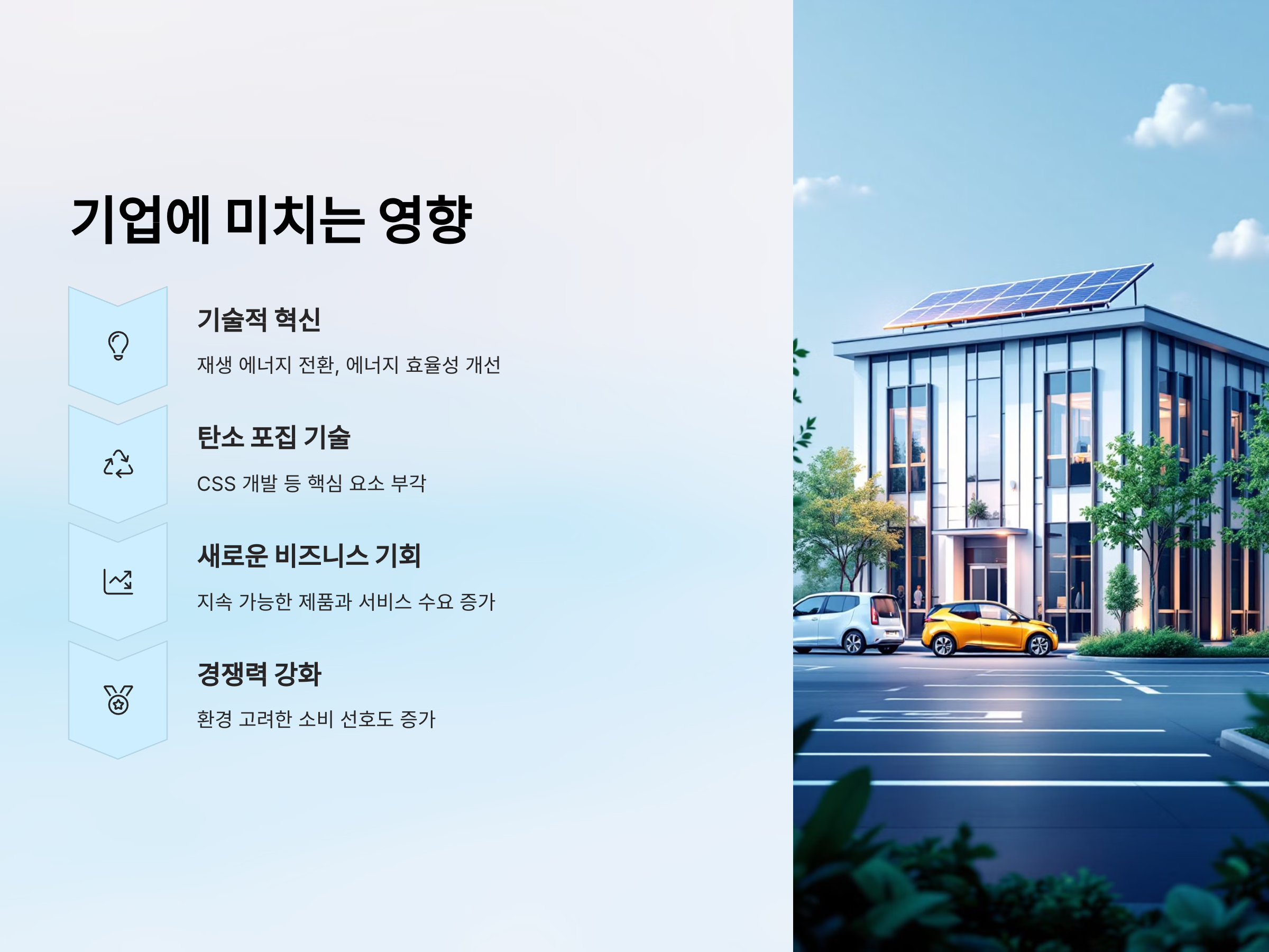 이러한 변화는 기업들에게 새로운 비즈니스 기회를 제공하고 있습니다. 탄소 중립 목표를 달성하는 과정에서 새로운 시장이 열리고, 지속 가능한 제품과 서비스에 대한 수요가 증가하고 있습니다. 또한, 소비자들은 점차 환경을 고려한 소비를 선호하고 있어, 기업들에게 탄소 배출 감소는 중요한 경쟁력으로 작용하고 있습니다.