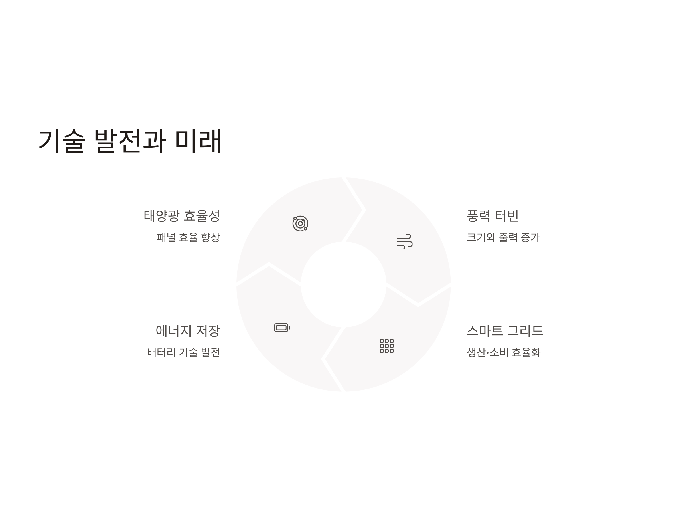 태양광 및 풍력 발전의 기술 발전은 계속해서 이루어지고 있으며, 이는 향후 더 큰 투자와 성장을 이끌 것입니다. 예를 들어, 태양광 패널의 효율성이 향상되고, 풍력 터빈의 크기와 출력을 증가시키는 기술 혁신이 이루어지고 있습니다. 또한, 스마트 그리드와 에너지 저장 시스템이 발전함에 따라, 재생 가능 에너지의 생산과 소비가 더욱 효율적으로 이루어질 수 있습니다.