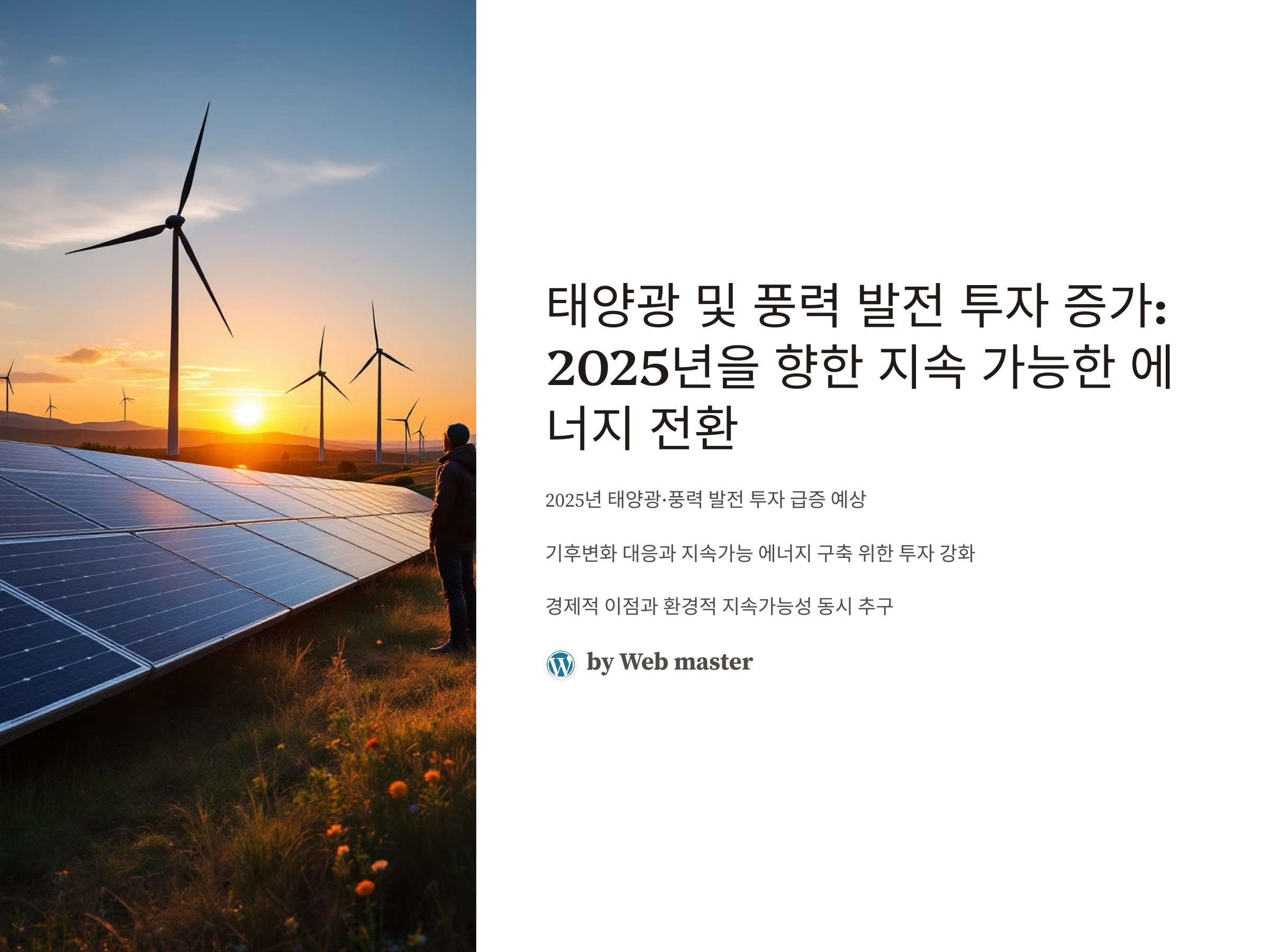 2025년을 앞두고 태양광과 풍력 발전은 더욱 중요한 역할을 할 것입니다. 기술 혁신과 정책적 지원이 결합되어, 재생 가능 에너지는 전 세계적으로 더 빠르게 확산되고 있으며, 이는 경제적 성장과 환경적 지속 가능성 모두를 추구하는 중요한 방향으로 자리잡고 있습니다. 앞으로의 전망은 매우 밝으며, 이러한 발전에 투자하는 것이 미래의 에너지 시장에서 경쟁력을 갖추는 중요한 전략이 될 것입니다.