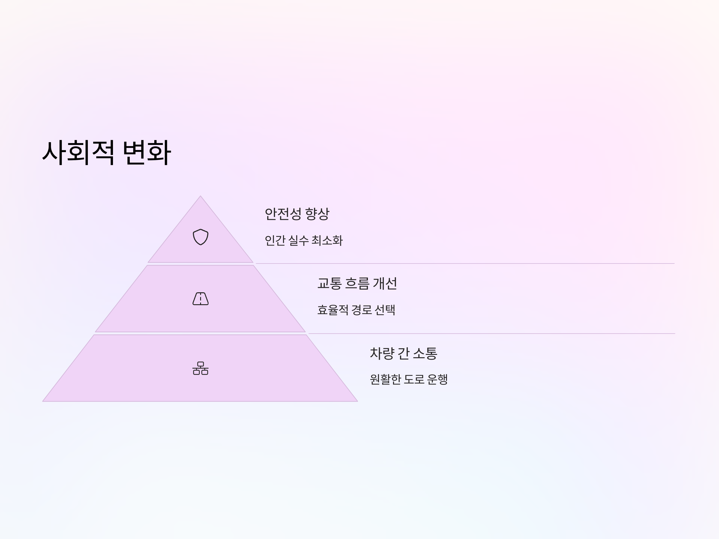 또한, 교통 흐름의 개선도 기대됩니다. 자율주행차는 차량 간의 간격을 정밀하게 조정하고, 보다 효율적인 경로를 선택할 수 있기 때문에 교통 체증을 줄일 수 있을 것입니다. 특히, 자율주행차들이 서로 소통하면서 운행되면, 기존보다 훨씬 더 효율적이고 원활한 도로 운행이 가능할 것입니다.