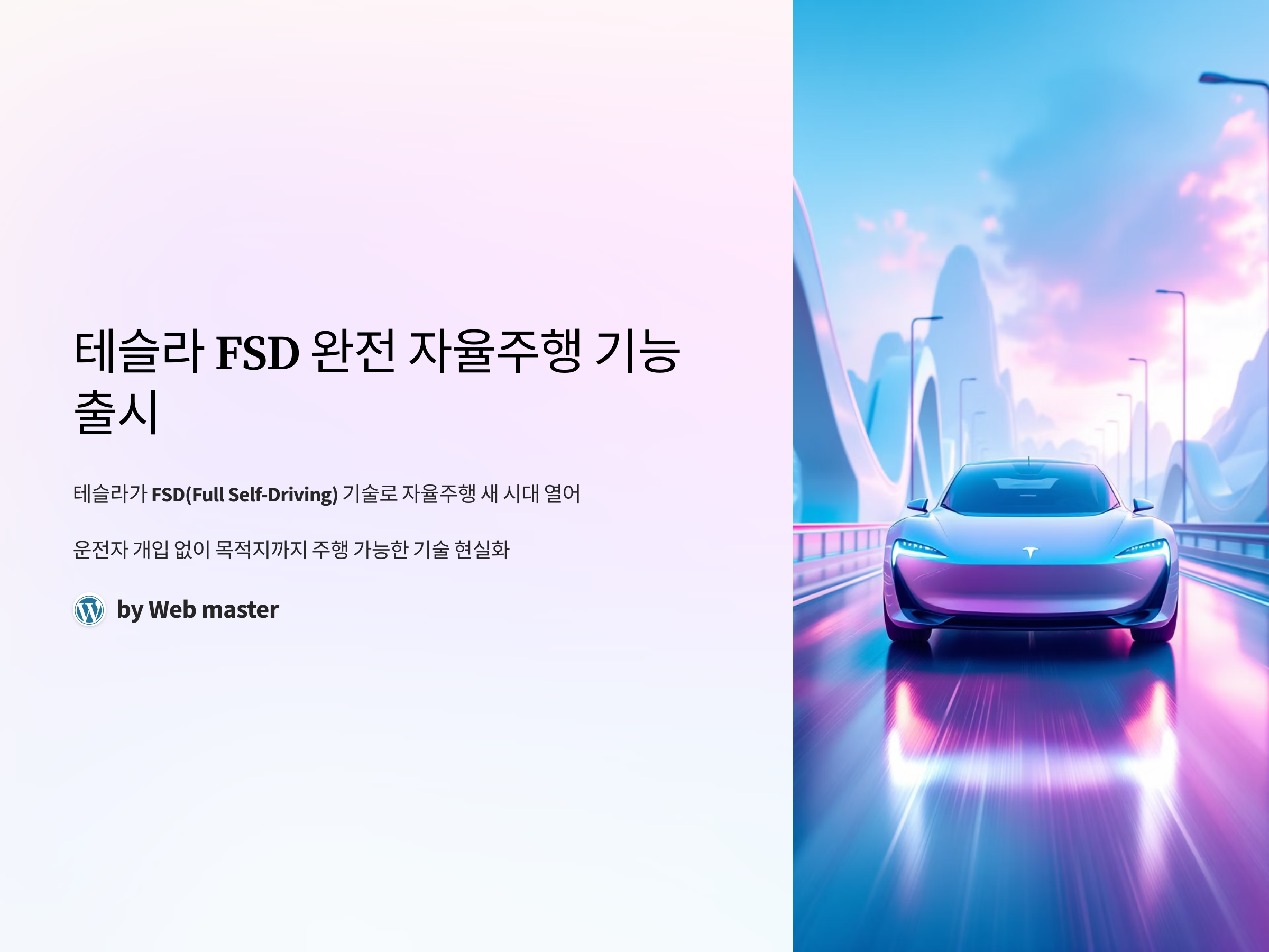 테슬라가 마침내 자율주행의 새로운 시대를 열었습니다. FSD(Full Self-Driving) 기술을 탑재한 테슬라 차량이 완전 자율주행 기능을 본격적으로 출시함에 따라, 차량의 운전자가 전혀 개입하지 않고도 도로 위를 자유롭게 주행할 수 있는 기술적 가능성이 현실로 다가왔습니다. 자율주행차에 대한 많은 관심과 기대가 모여있는 가운데, 테슬라의 FSD는 그 어느 때보다 주목받고 있으며, 이 기술이 자동차 산업과 우리의 일상에 미칠 변화에 대한 이야기를 자세히 살펴보겠습니다.