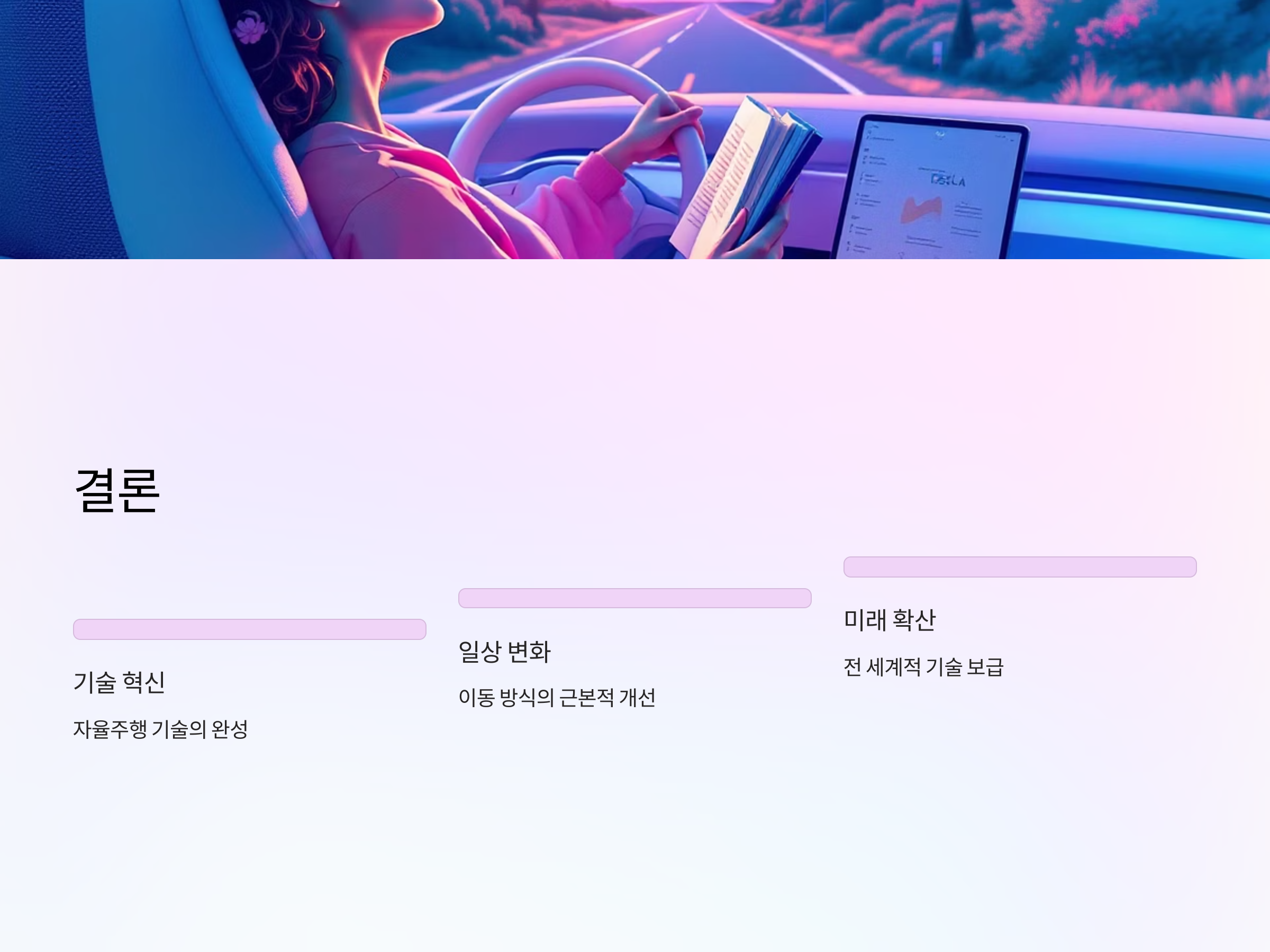 미래에는 자율주행차가 일상적인 모습으로 도로 위를 주행할 수 있을 것입니다. 테슬라는 그 시작을 알렸고, 이제는 전 세계적으로 이 혁신적인 기술이 확산되기를 기대해 봅니다. 자율주행의 미래는 이미 시작되었습니다.