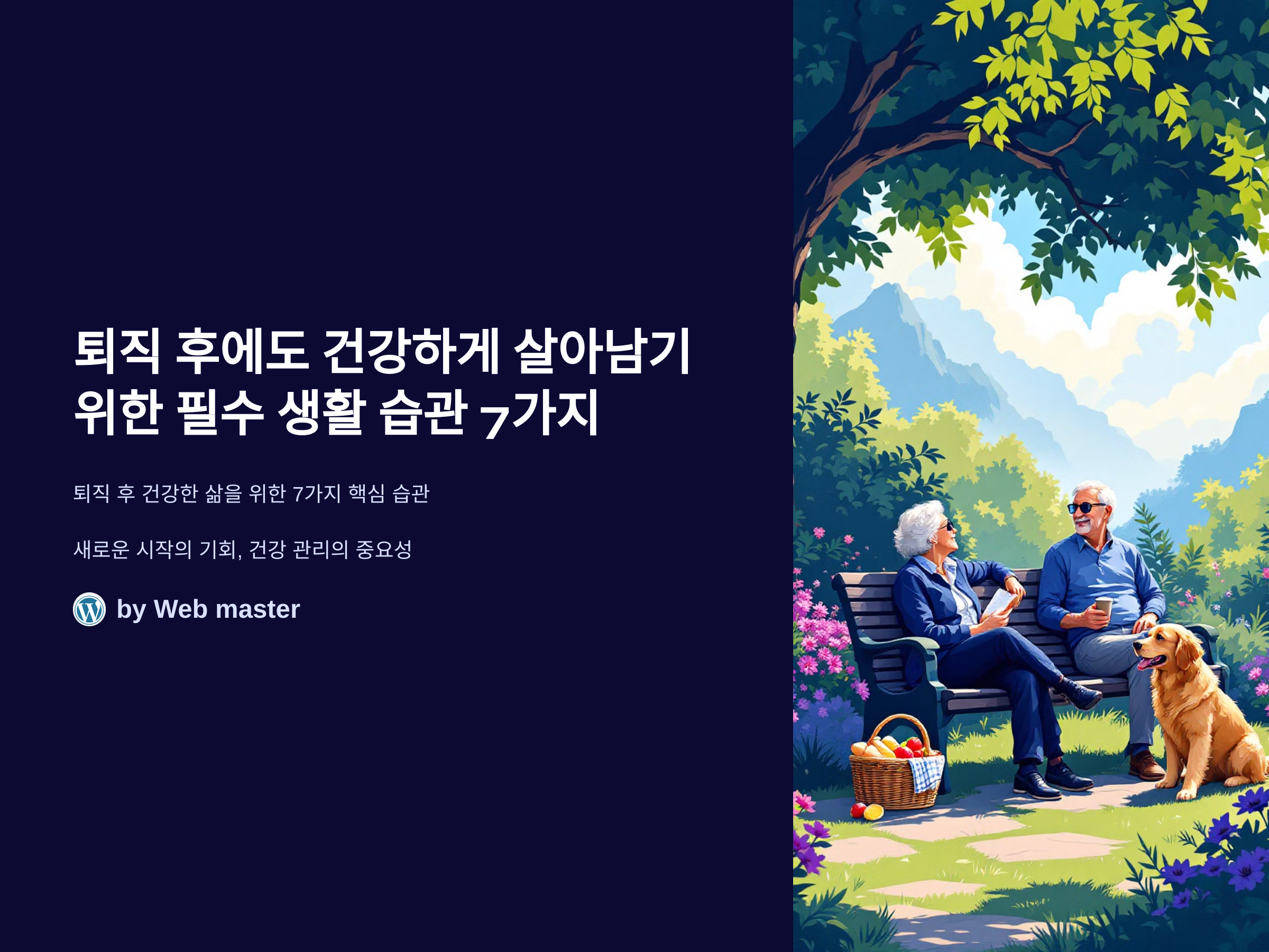 퇴직 후의 삶은 새로운 시작의 기회입니다. 하지만 직장을 떠나고 나면 일상적인 변화로 인해 건강 관리가 어려울 수 있습니다. 대부분의 사람들이 퇴직 후 건강을 잃거나, 체력 관리에 소홀해지기 쉽습니다. 그렇다면 퇴직 후에도 건강한 생활을 유지하려면 어떻게 해야 할까요? 건강한 생활을 위한 핵심적인 습관들을 지금부터 소개합니다. 이를 통해 퇴직 후에도 활기차고, 만족스러운 삶을 누릴 수 있습니다.