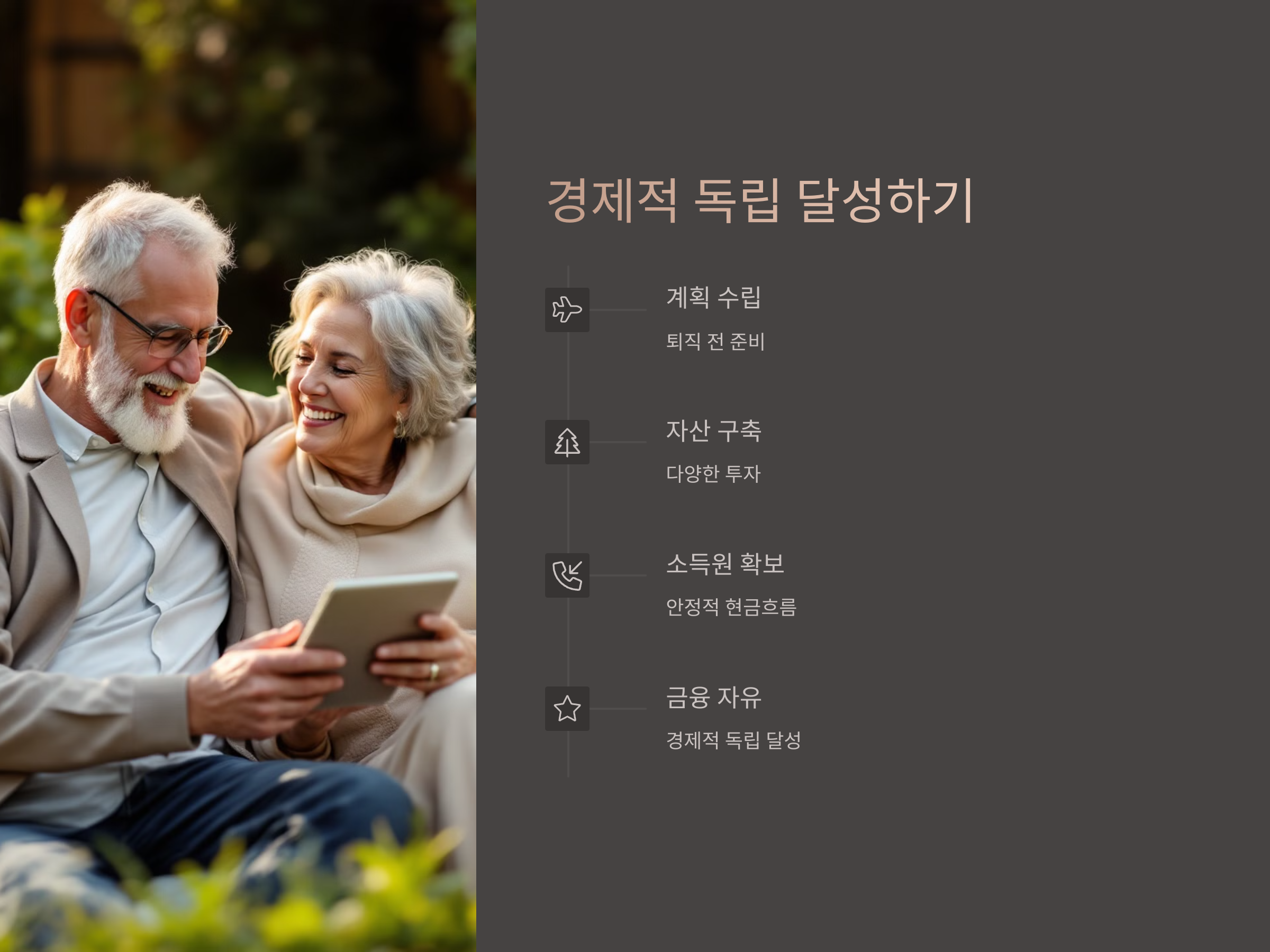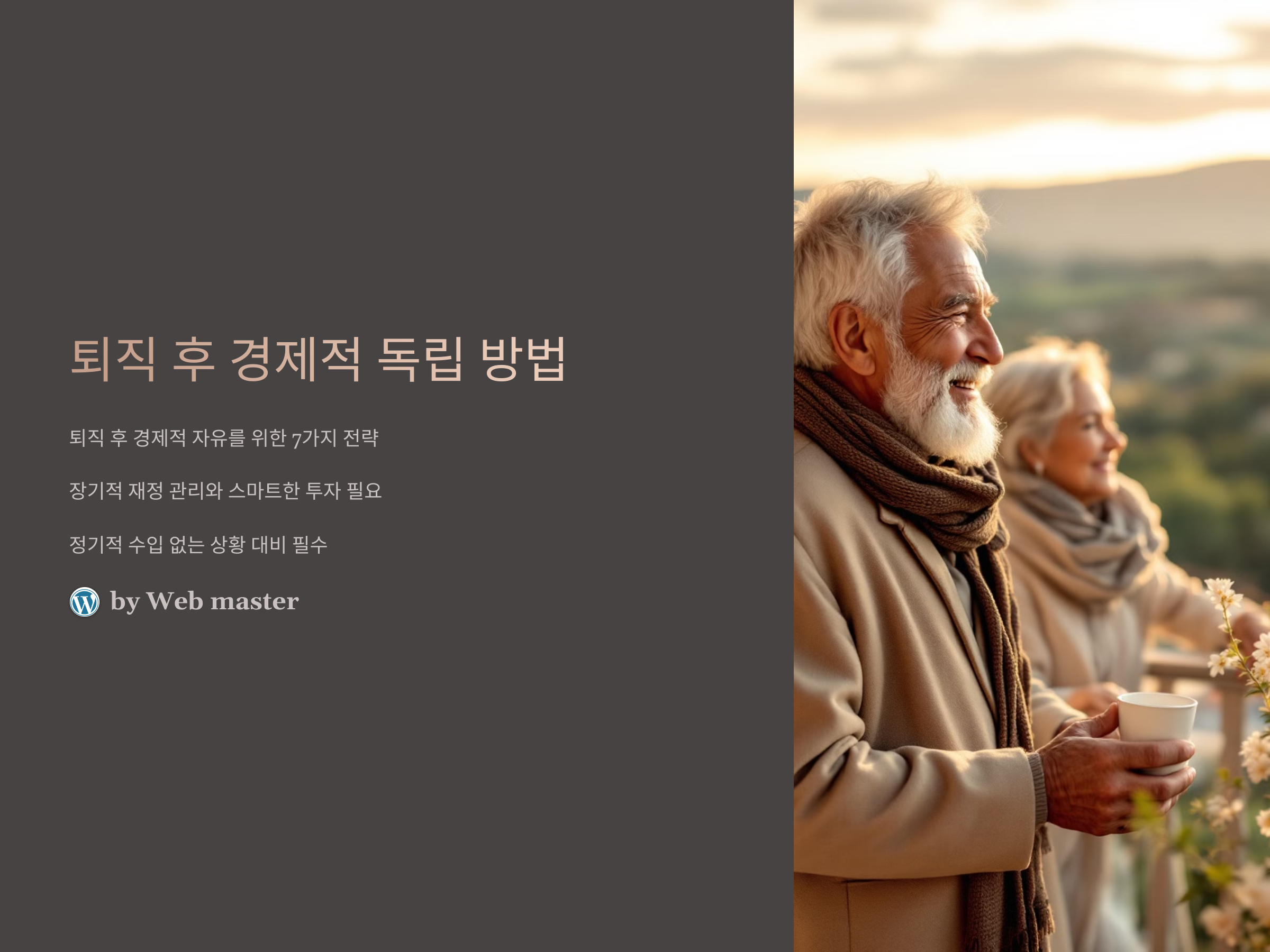 퇴직 후 경제적 독립을 꿈꾸는 사람들에게는 재정적 자립을 위한 체계적인 계획과 실천이 중요합니다. 많은 사람들이 퇴직 후에도 경제적 자유를 누리기를 원하지만, 이를 위해서는 장기적인 재정 관리와 스마트한 투자 전략이 필요합니다. 특히 은퇴 후에는 정기적인 수입이 없으므로, 경제적 독립을 이루기 위해서는 퇴직 전부터 준비가 필요합니다.